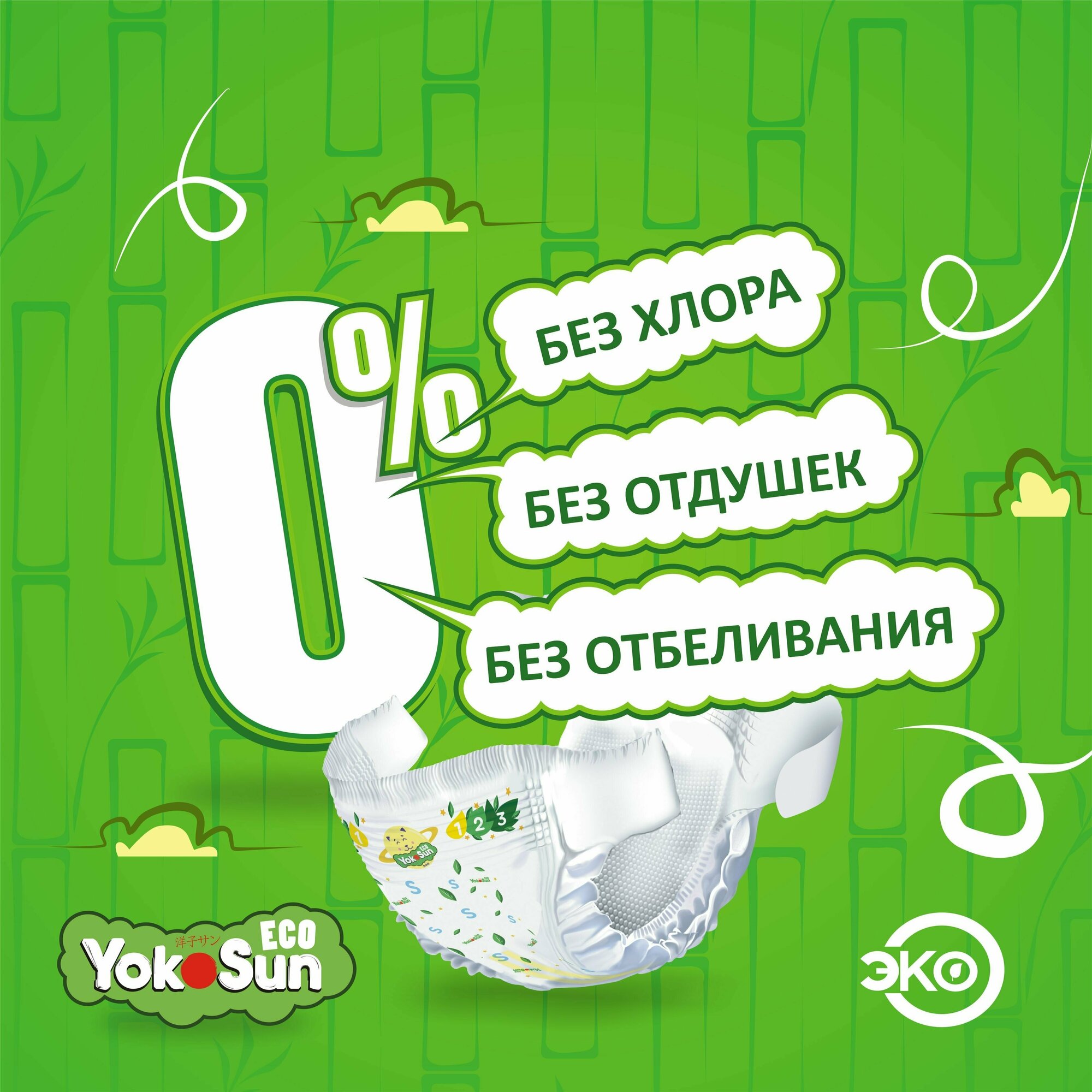 Подгузники на липучках YokoSun Eco – это новая серия подгузников торговой марки YokoSun. Отвечает всем требованиям современных мам, имеет знак качества экологичности «Эко» и рекомендована дерматологами. Нежный 3D-слой внутренней поверхности надежно удерживает даже жидкий стул.