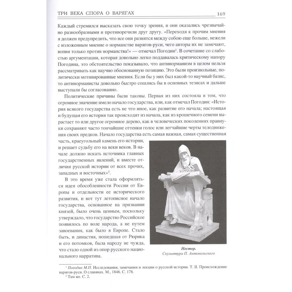 «Норманский вопрос», «норманская проблема» — тема для русской исторической науки достаточно болезненная в силу того, что она получила прежде всего политический окрас, выйдя за пределы академической среды. Копья ломают историки-профессионалы, любители и даже досужих обывателей порой не минует чаша сия. Автор не стремится выяснить, кто прав, а кто нет. Он стремится в смысл и ход полемики, чтобы разобраться в сути многовековых споров, видя в них отражение поиска «национального русского нарратива», разворачивая достаточно подробную панораму становления и развития представления о «призвании варягов» и гипотетического создания ими государства Русь.