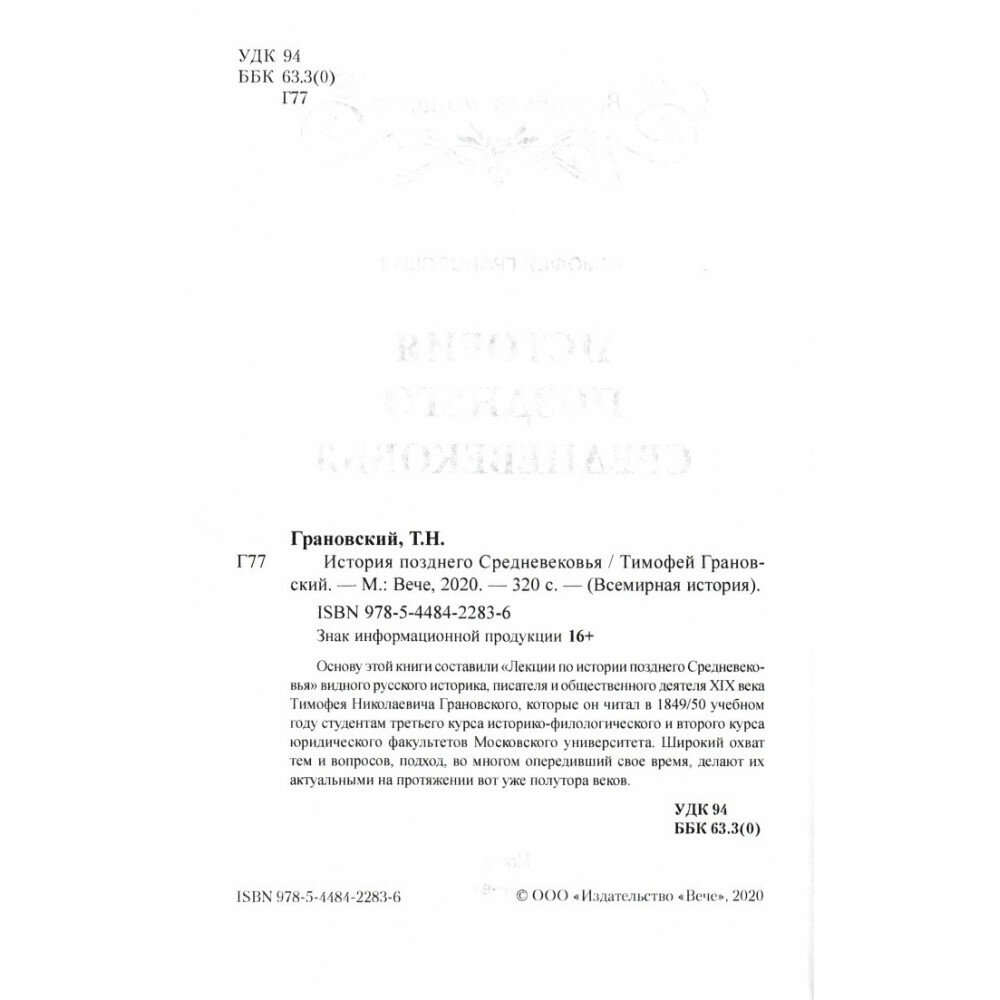 История позднего Средневековья (Грановский Тимофей Николаевич); Вече, 2020