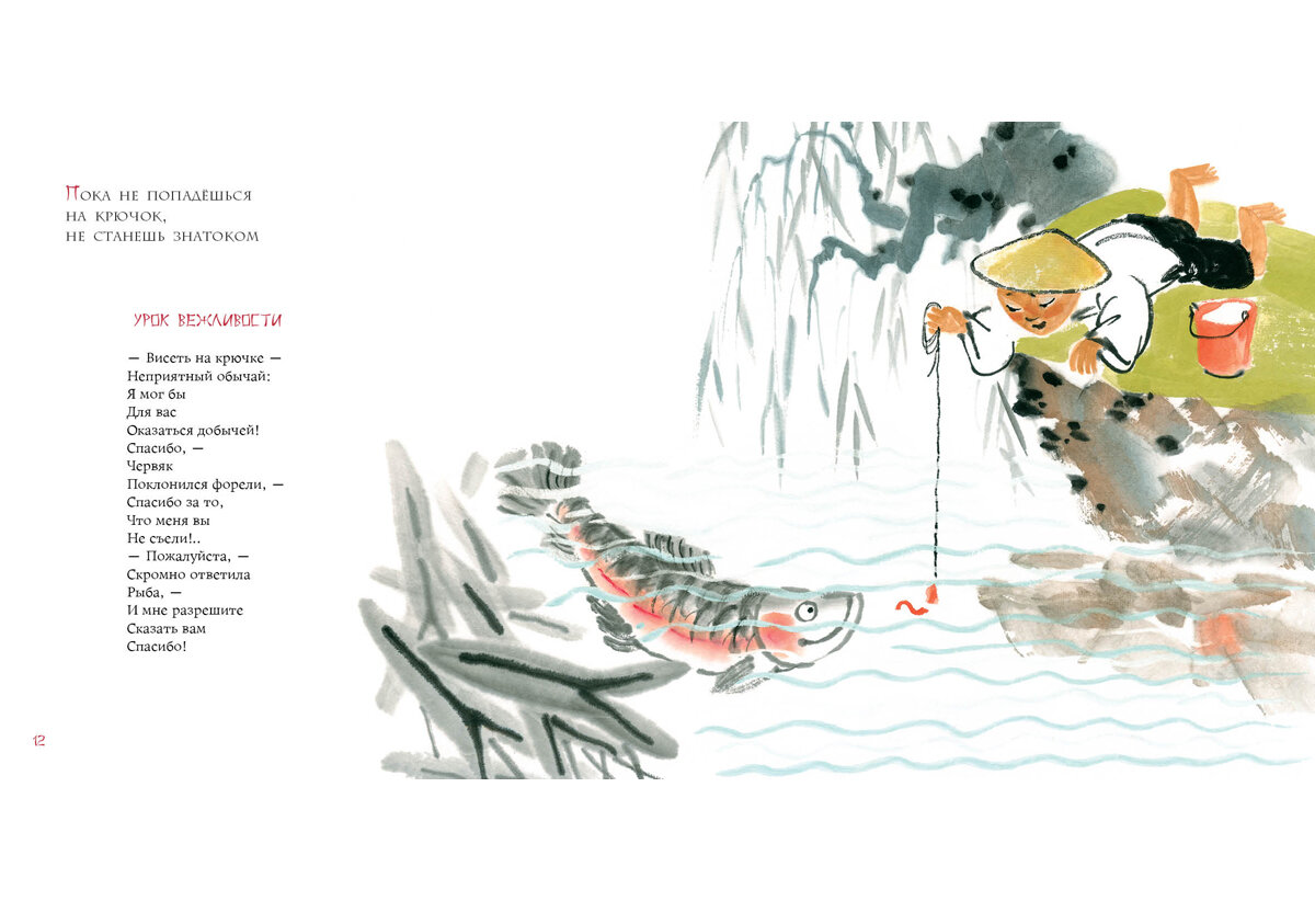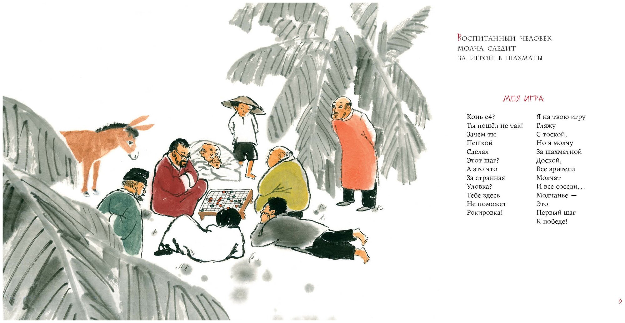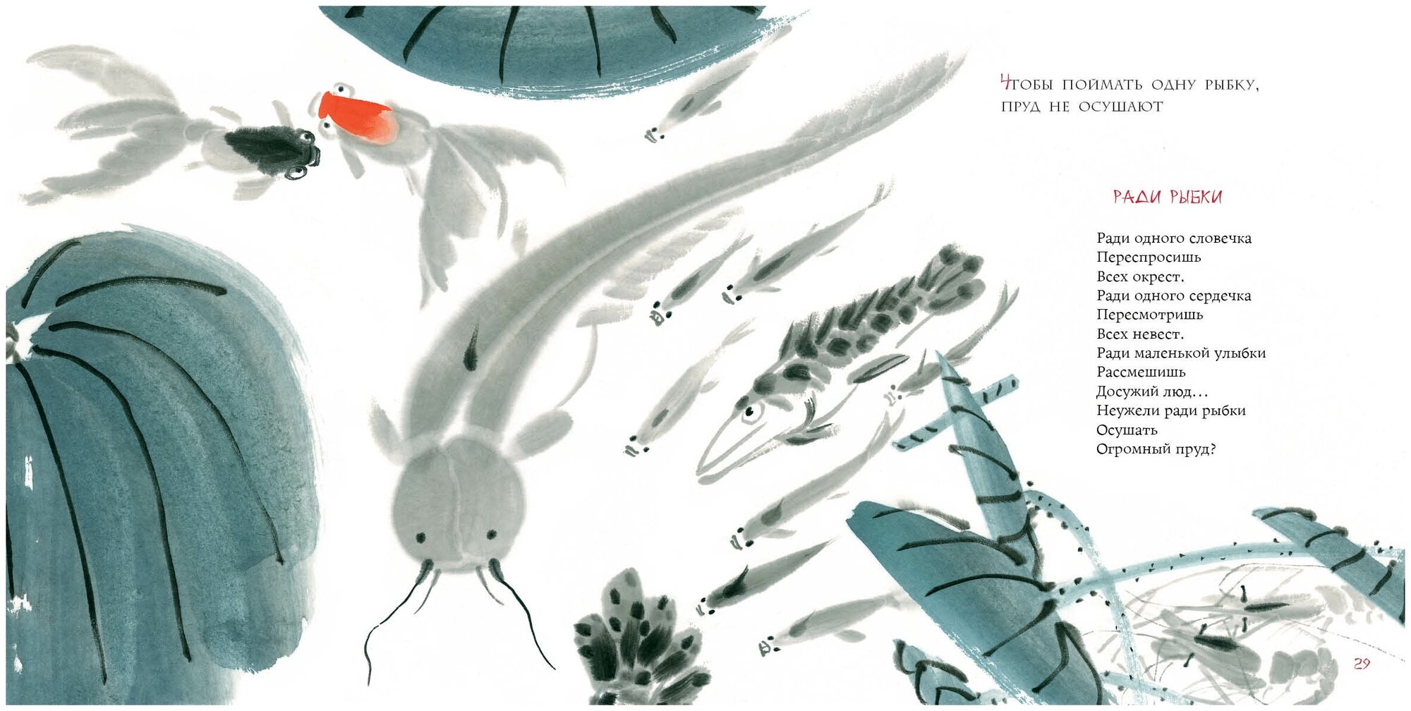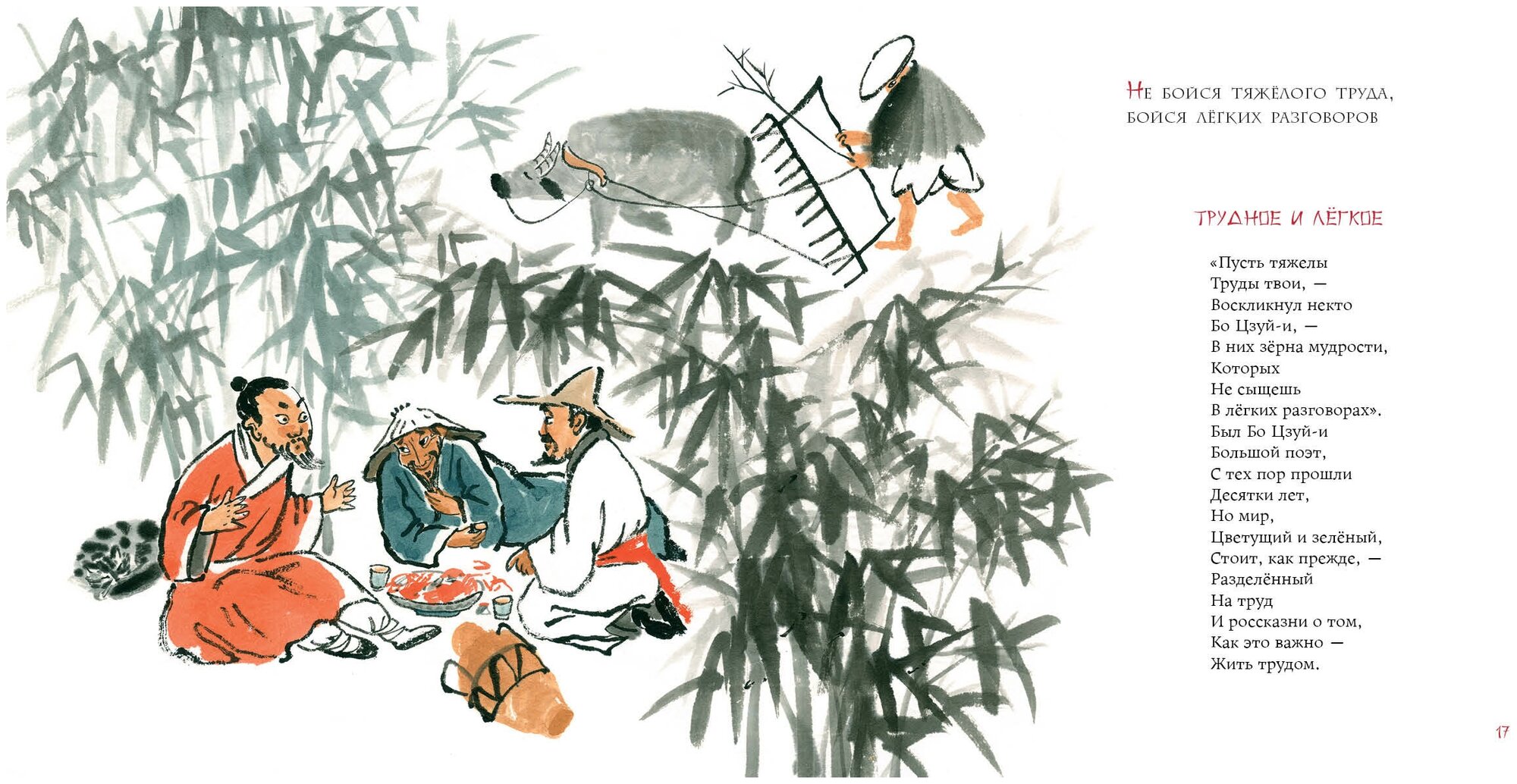Потрясающая книга! Жаль, что шедевры не всегда подмечаешь сразу. Утончённые иллюстрации в стиле китайской живописи гохуа окутывают таинственной атмосферой. Изящные и поэтичные произведения, которые хочется заучивать и употреблять в повседневной жизни. Каждая страничка полна смысла, вневременных вопросов и ответов на них. Будет полезно и детям читать, и взрослым. И делать выводы, и вести на основе прочитанного философские беседы. Этот экземпляр очень приятно рассматривать и перечитывать. Книга расслабляет и помогает разрешать трудные жизненные ситуации.