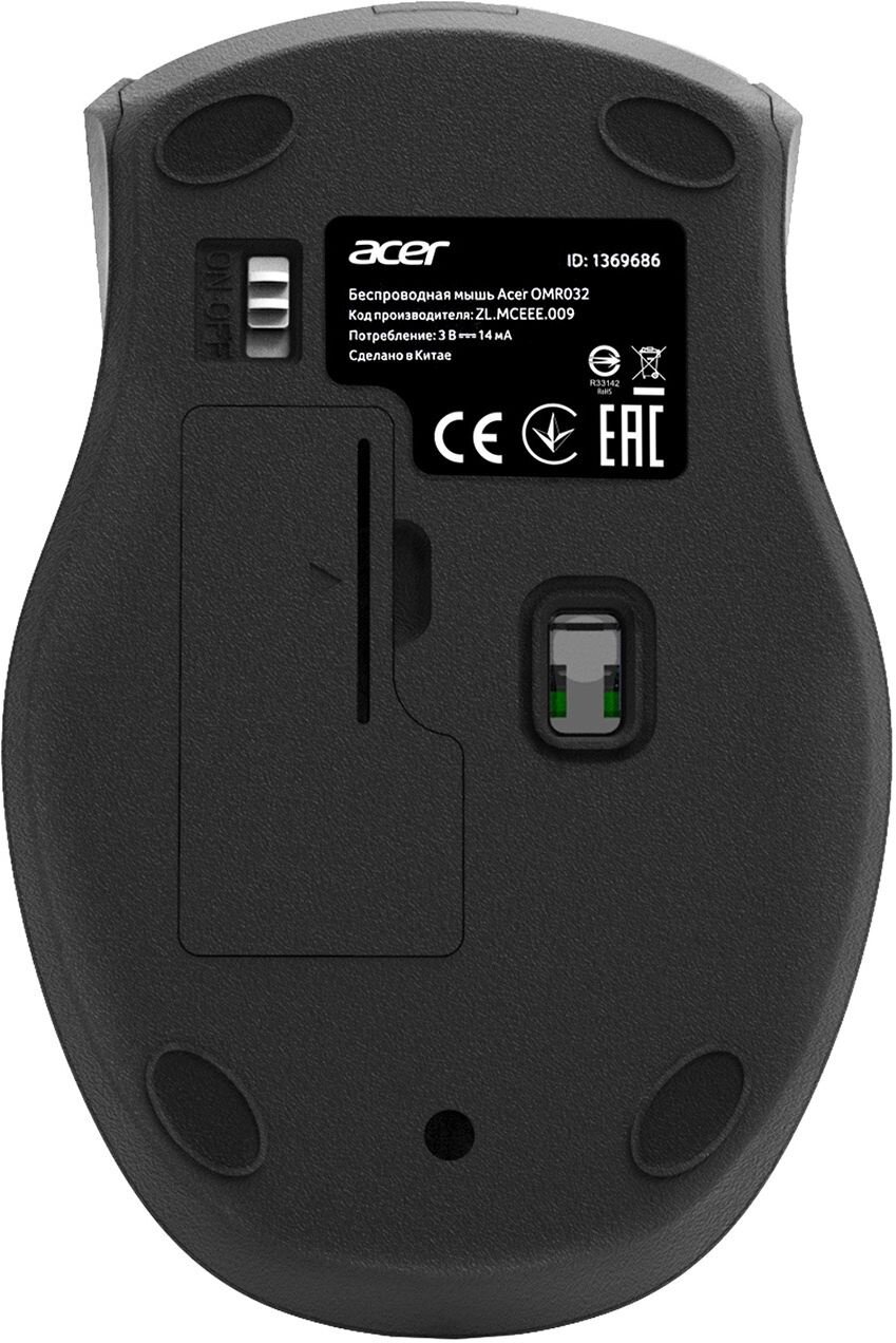 Настроить ее очень легко — просто вставьте миниатюрный беспроводной приемник в USB-слот. Мышь Acer OMR030 не требует сопряжения и установки программного обеспечения. Совместима с операционными системами Windows, Mac и Chrome.