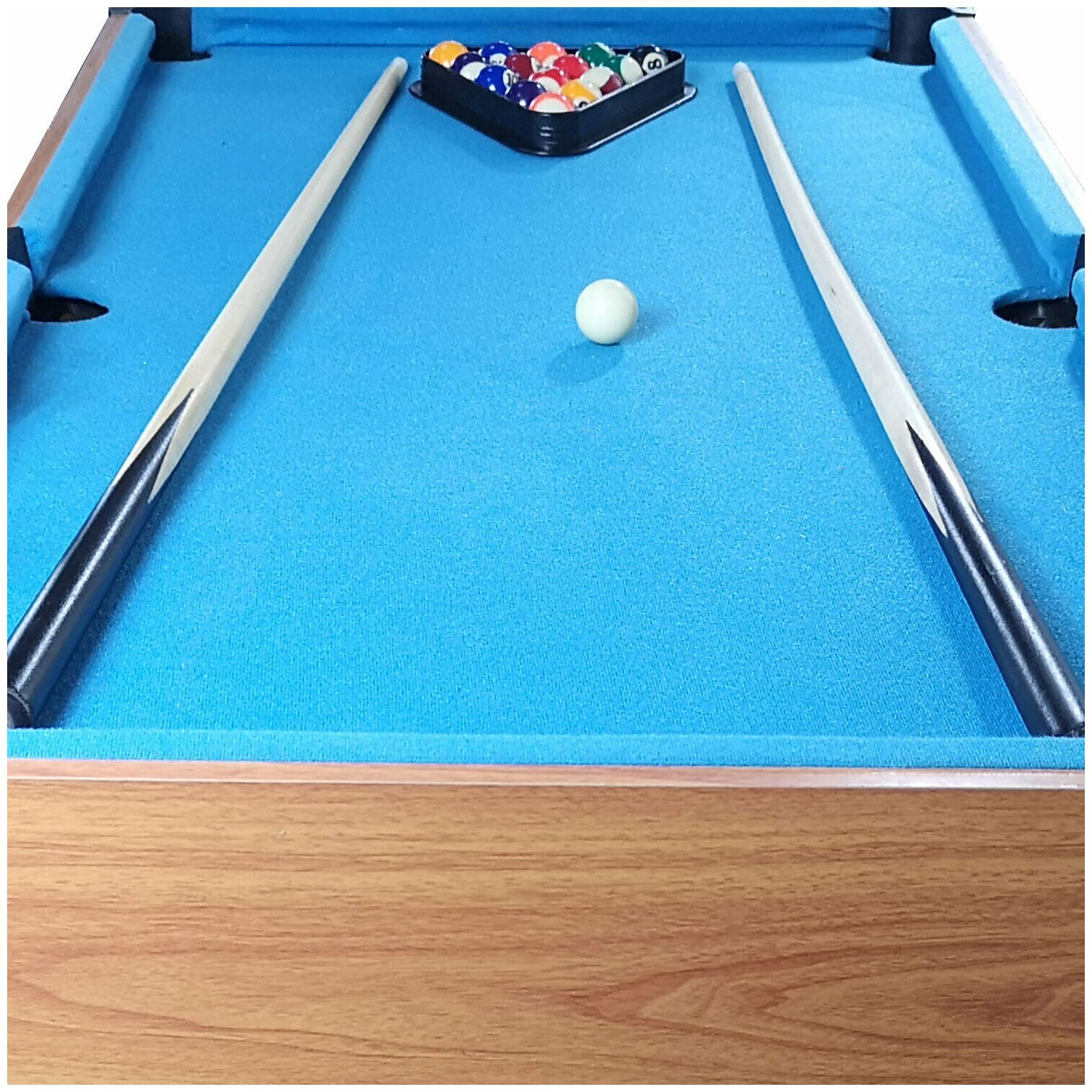 | Комплектация | биты для аэрохоккея; шайбы для аэрохоккея; треугольник; шары для бильярда; кии |