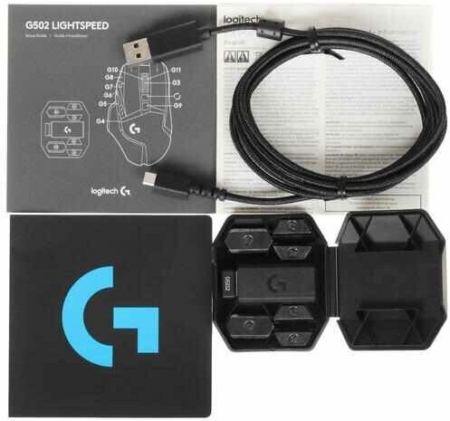 | Комплектация | 2 грузика по 4 г, 4 грузика по 2 г, Игровая мышь, беспроводный приемник LIGHTSPEED, документация пользователя, кабель для зарядки и передачи данных, удлинитель-адаптер для приемника |