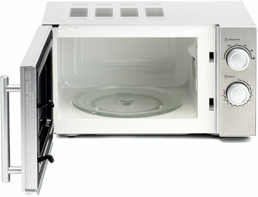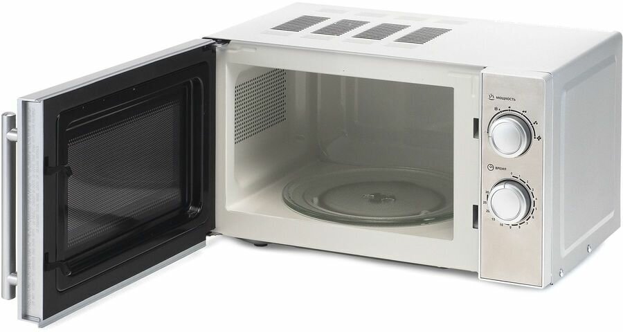 Классическая микроволновая печь с простым и надёжным механическим управлением. Этот прибор заметно облегчит ваши кухонные хлопоты. Вы сможете не только готовить, но и быстро разогревать еду прямо в тарелке (при условии, что она подходит для использования в СВЧ).