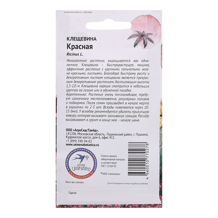 Семена Клещевина красная 20 г Октябрина Ганичкина