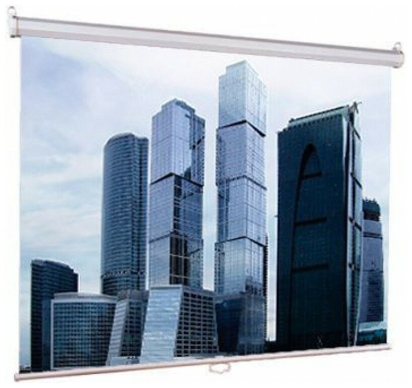Отличный проекционный экран за свои деньги. Стоит недорого, не тяжелый, легко при надобности перезти на дачу на летний сезон, легко выезжает и сворачивается обратно, угол обзона и яркость изображения тоже хороши ( хотя и не с чем сравнивать, т.к. это мой первый проектор и экран ).