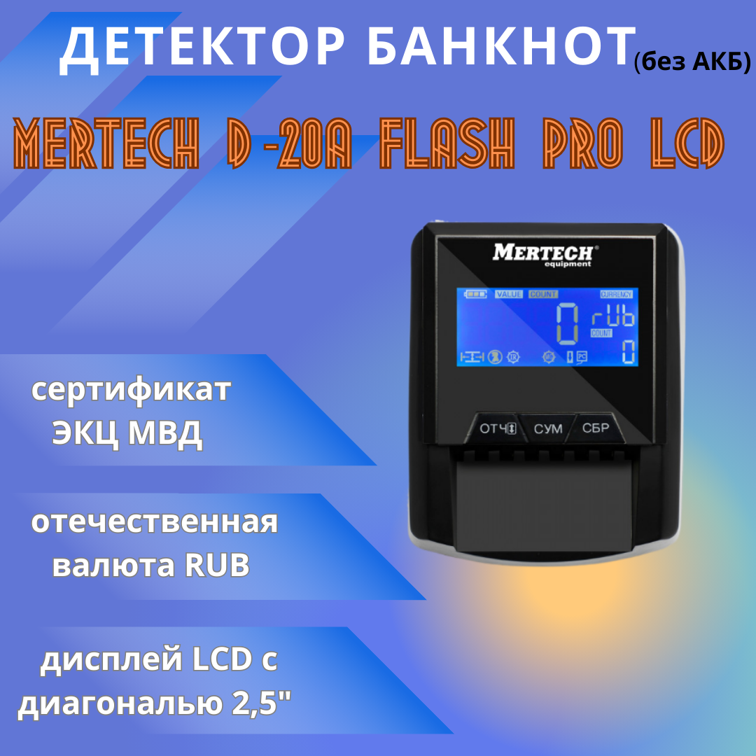 Детектор банкнот Mertech D-20A FLASH PRO LCD автоматический рубли АКБ