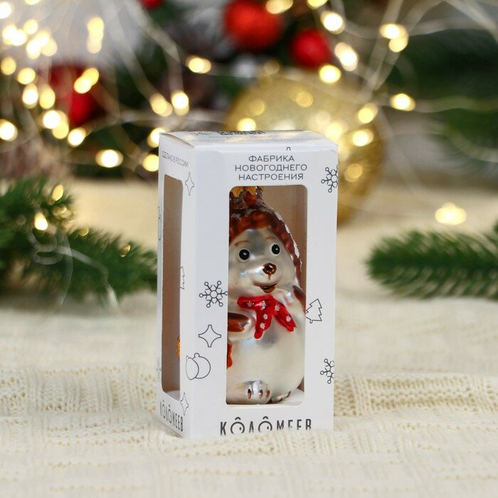 Елочное украшение Ёжик 9 см из стекла — стильный акцент для новогодней елки, подарок с ручной росписью и блестящим покрытием. Закажите с быстрой доставкой!