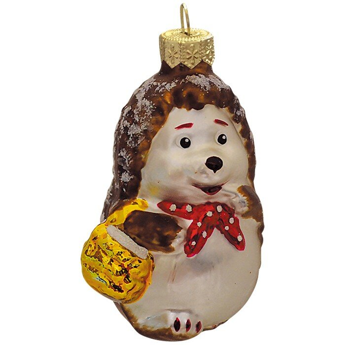Ёжик высотой 9 см — универсальный вариант, подходит для елок от 60 см, благодаря среднему размеру и лёгкому стеклу.