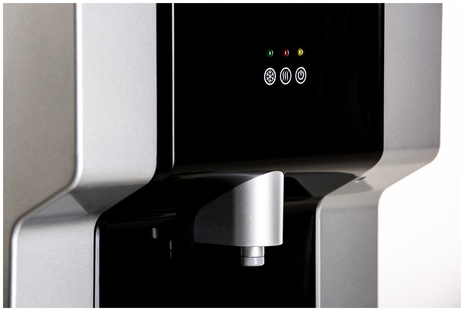 Напольный кулер с компрессорным охлаждением. В нижней части имеется небольшой не охлаждаемый шкафчик на 16 л. Один кран подачи воды из которого течет горячая, холодная вода и вода комнатной температуры. На горячем кране имеется защита от случайного нажатия и ошпаривания. Отличная, стильная модель кулера прекрасно впишется в любой интерьер дома или офиса.