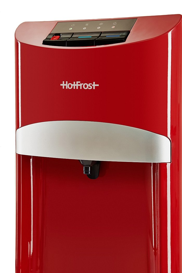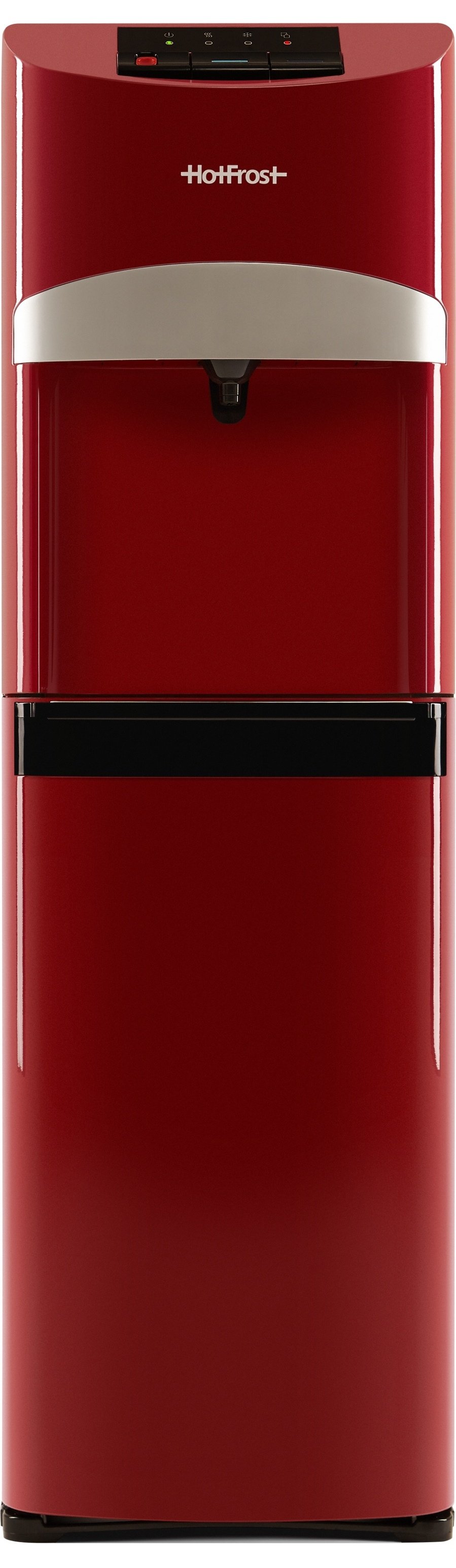 Познакомьтесь с HotFrost — это еще одна популярнейшая модель с функцией нижней загрузки емкости с водой. Эта модель не только идеально впишется в интерьер любой стилистики, но и станет к нему ярким дополнением за счет своего красного цвета. Благодаря нижней загрузке бутыли емкость с водой надежно скрыта внутри аппарата, то есть, она не будет привлекать к себе внимание и цеплять ваш взгляд. Новый механизм загрузки бутыли с водой оценят по достоинству пользователи, которым уже немного поднадоела постоянная трата сил и энергии. На самом деле, поднять полную бутыль с водой, которая весит почти 20 кг — не такая уж и простая задача! Благодаря нижней загрузке бутыли эта задача решена раз и навсегда. Теперь полную емкость достаточно просто приподнять над полом и поставить на специальную платформу.