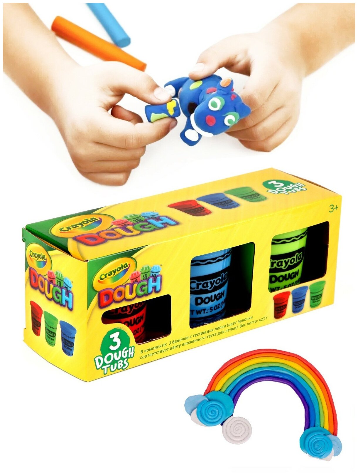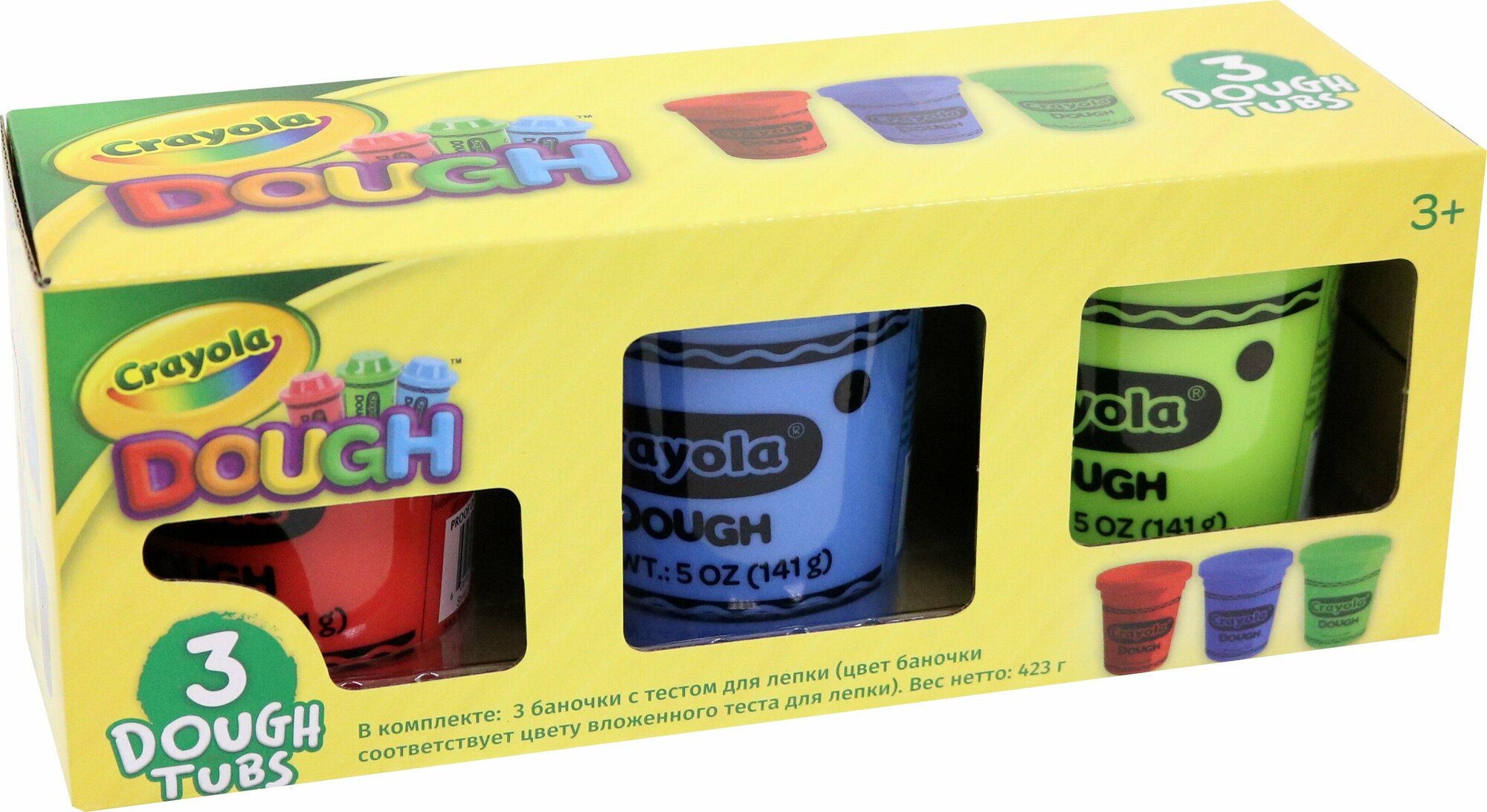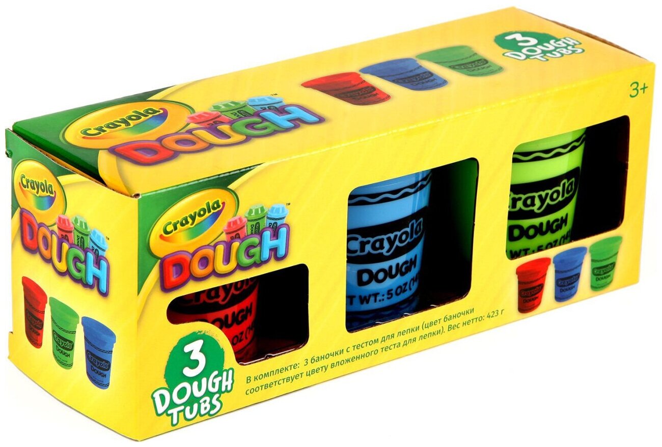 Тесто для лепки Crayola яркое, мягкое. Не прилипает к рукам и предметам. Не токсичное, не вызывает аллергию (за исключением случаев у детей, имеющих аллергическую реакцию на глютен, содержащийся в пшенице).
