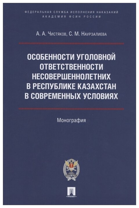 Особенности уголовной ответственности несовершеннолетних в Республике Казахстан в современных услов. (Чистяков Алексей Алексеевич, Наурзалиева Сауле Мергеровна); Проспект, 2020