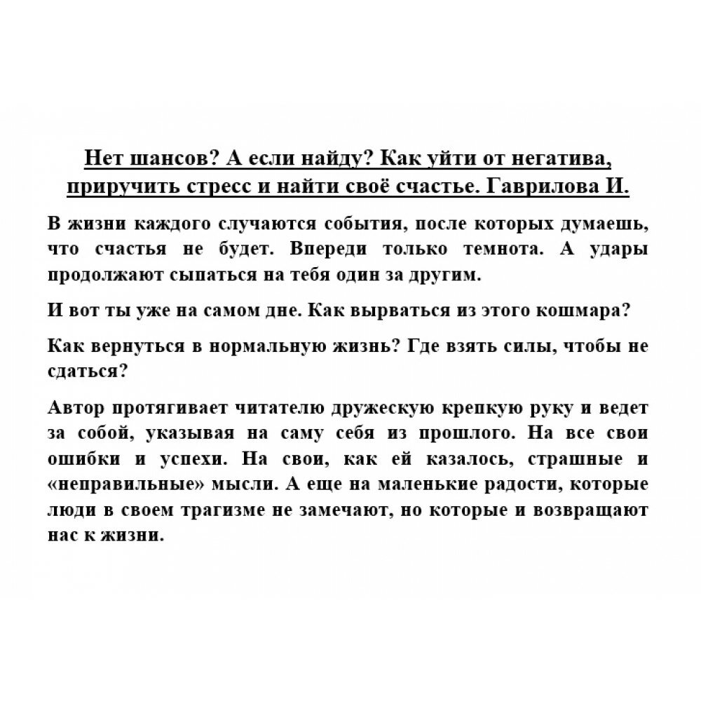Нет шансов? А если найду? Как уйти от негатива приручить стресс и найти своё счастье (Ирина Владимировна Гаврилова); АСТ, 2021