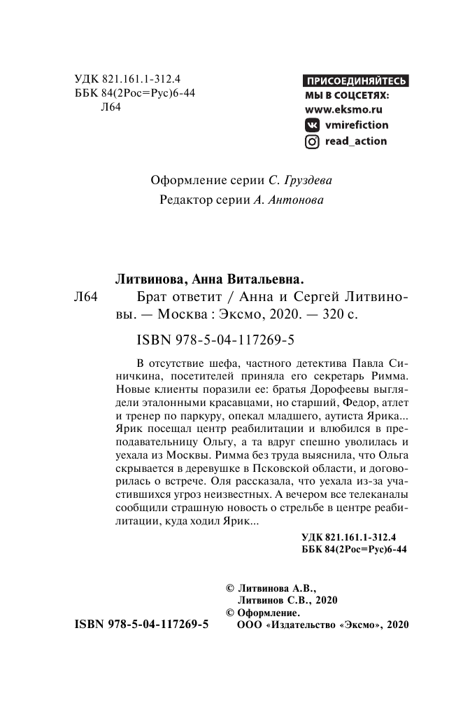 Книга: Брат ответит (Литвинова Анна Витальевна; Литвинов Сергей Витальевич); Эксмо, Редакция 1, 2020
