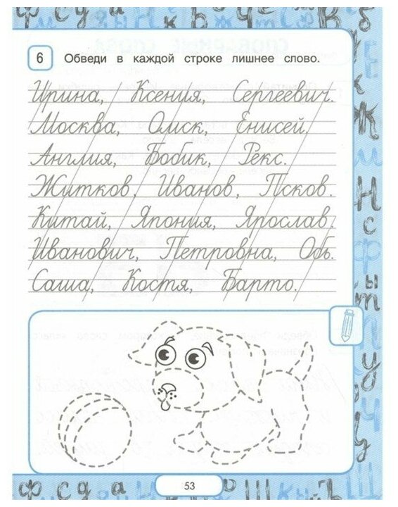Младшему школьнику тяжело долгое время заниматься непрерывным письмом. Отвлечь ребенка и переключить внимание помогут игровые задания в рамках. Рисование по пунктирным линиям послужит дополнительной тренировкой для укрепления мелких мышц руки.