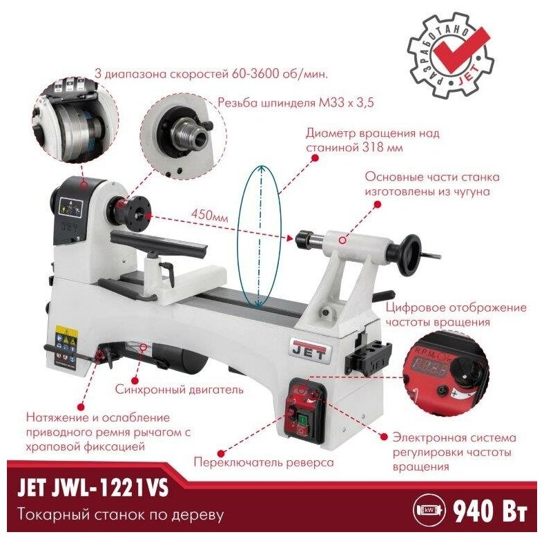 Сервис сравнения цен СкидкаГИД предлагает сравнить цены на товар «Токарный станок по дереву JET Jwl-1221vs»