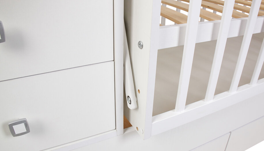 Кровать-трансформер идеально подходит для малышей и подростков. Оптимальная высота боковины защитит малыша от выпадения. Когда ребенок подрастет, можно опустить боковину, что позволит малышу самостоятельно забираться в постель. Кроватка оснащена механизмом качания, который позволяет убаюкивать малыша в считанные минуты.