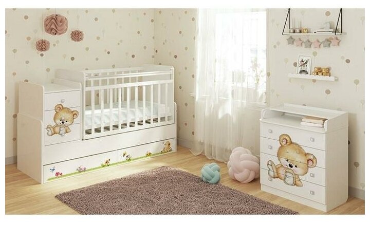 Удобная трансформация в кровать для подростка, когда ребенок вырастет из простой кроватки. Кроватка детская - трансформер Фея вяз-белый с пеленальным комодом и механизмом качания. Кроватки-трансформеры имеют большой диапазон расцветок и подойдут, в первую очередь, для квартир с небольшой площадью. Под кроваткой 2 выдвижных ящика, позволяющих удобно разместить вещи и игрушки малыша на небольшом пространстве.
