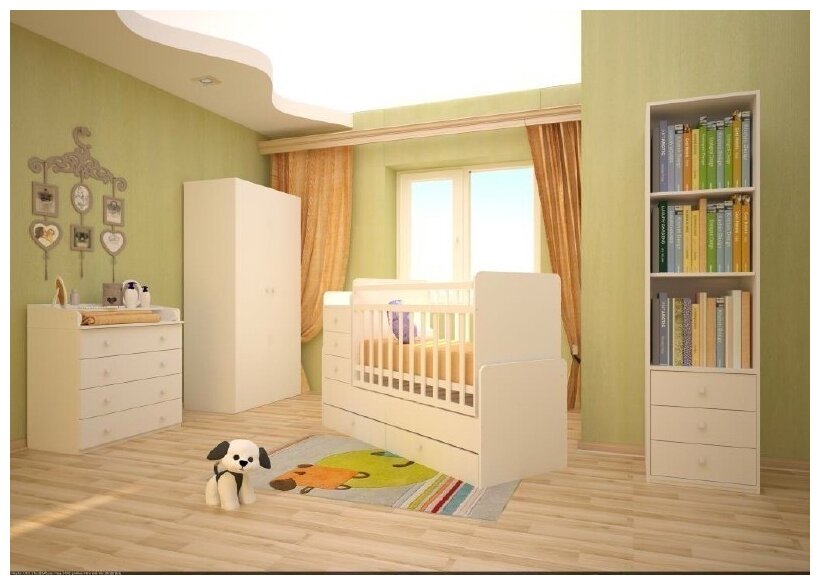 Удобная трансформация в кровать для подростка, когда ребенок вырастет из простой кроватки. Кроватка детская - трансформер Фея вяз-белый с пеленальным комодом и механизмом качания. Кроватки-трансформеры имеют большой диапазон расцветок и подойдут, в первую очередь, для квартир с небольшой площадью. Под кроваткой 2 выдвижных ящика, позволяющих удобно разместить вещи и игрушки малыша на небольшом пространстве.
