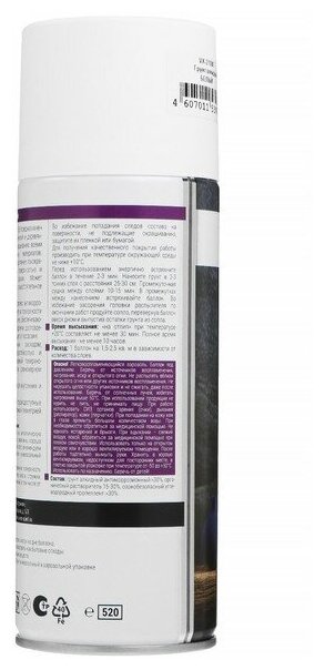 Перед использованием энергично встряхнуть баллон в течение 2-3 мин. Грунт следует наносить с расстояния 25-30 см на сухую, предварительно зачищенную от ржавчины и обезжиренную поверхность в 2-3 слоя. Поверхности деревянных деталей должны быть очищены от наплывов клея, смолы, стружки, грибка, плесени и других загрязнений, зашлифованы и очищены от пыли. Во избежание попадания следов грунта на поверхности, не подверженные обработке, рекомендуется защищать их.