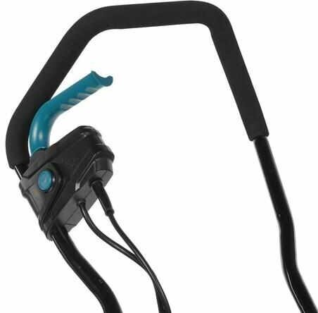 Держатель культиватора имеет мягкую нескользящую накладку для удобного и надежного хвата. Для электрического кабеля предусмотрен фиксатор, который предотвращает отключение техники от сети и уменьшает риск попадания провода под фрезы.Смотри также характеристики.