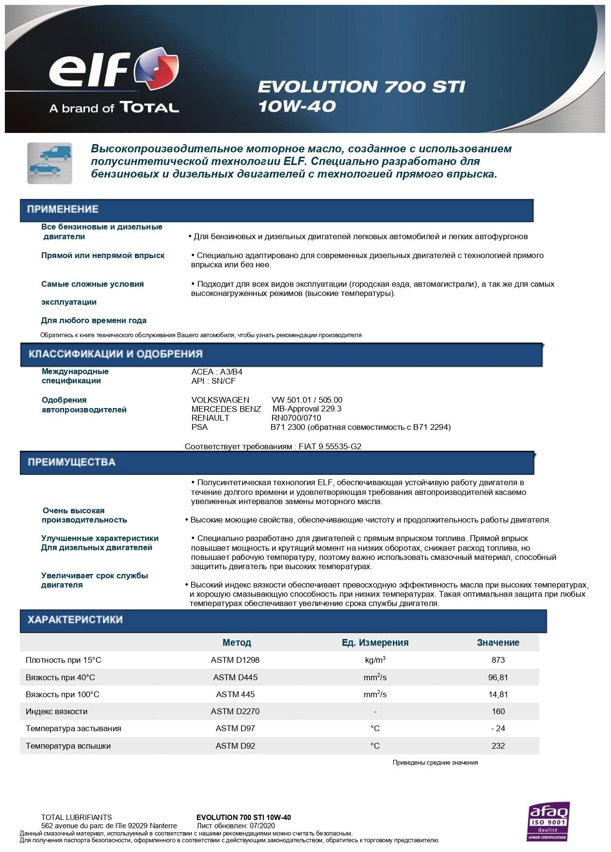 - Моторное масло Elf Evolution 700 STI 10W-40 5 литров.