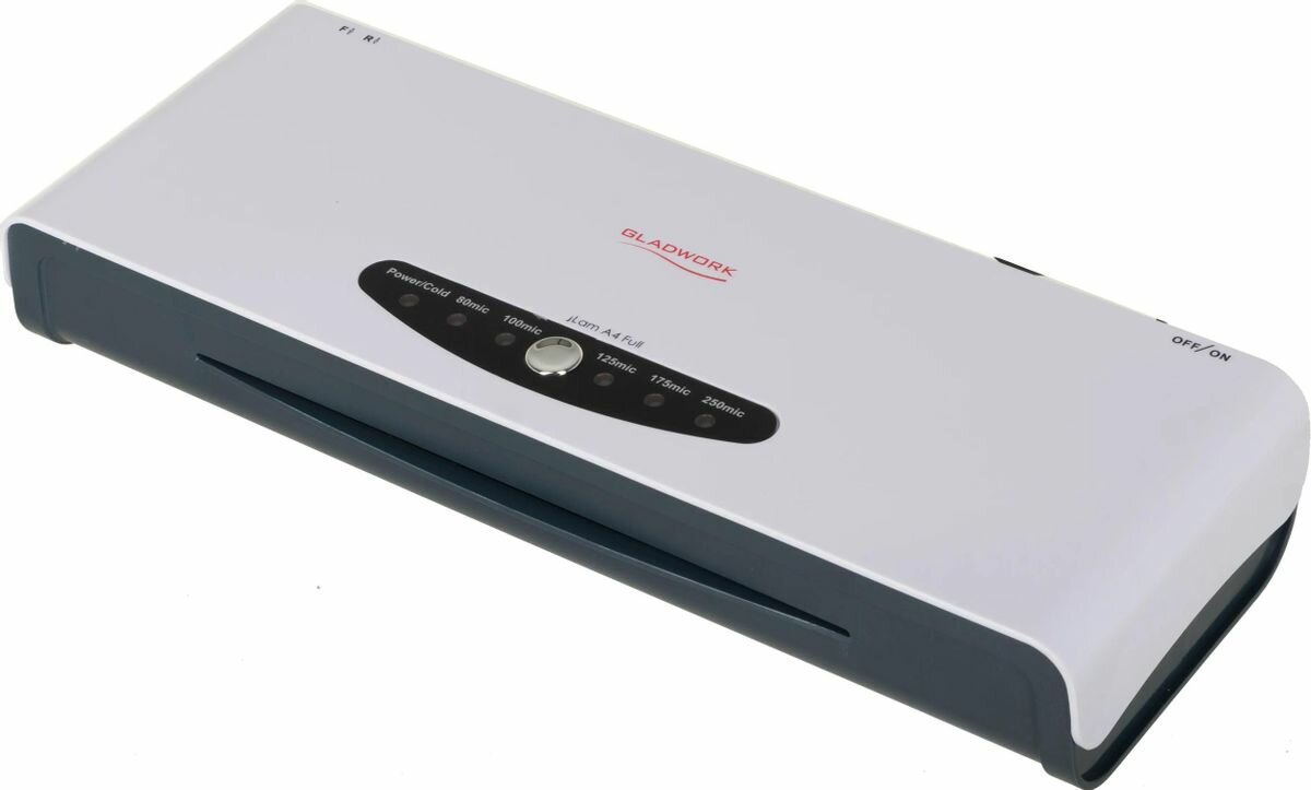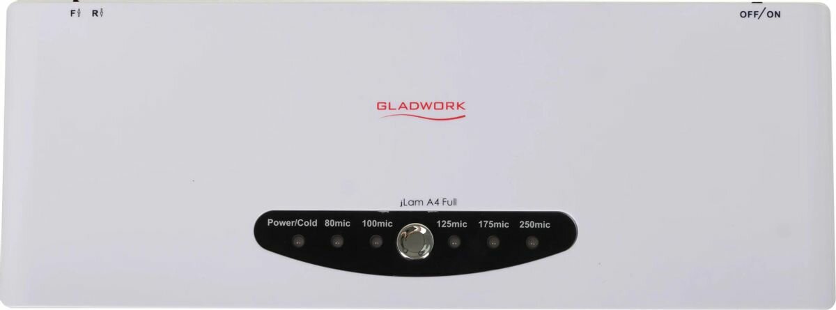 Gladwork — пакетный ламинатор, который с можно использовать и в домашних условиях и на рабочем месте. Система, состоящая из 4-х рабочих валов обеспечивает ламинирование при постоянной температуре нагрева.