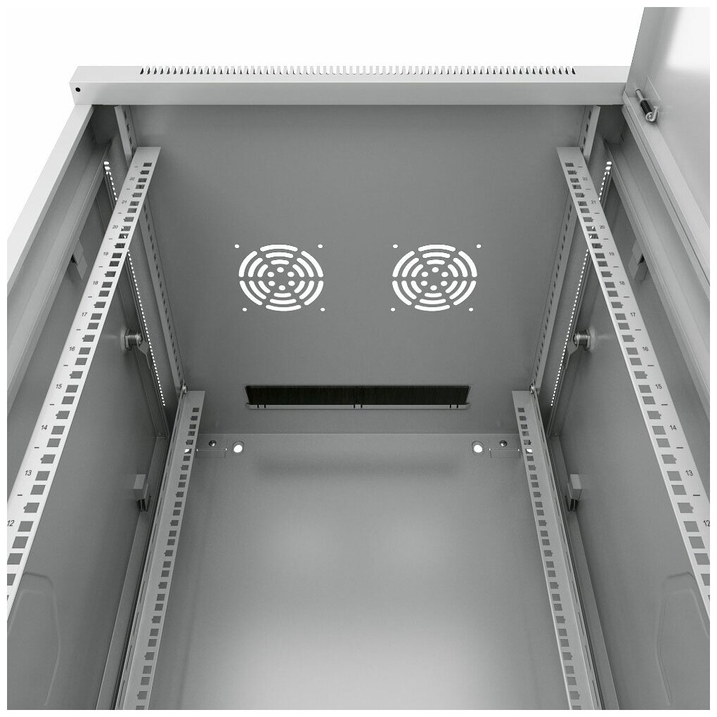 Шкаф телекоммуникационный настенный 19" 9U 600x450, дверь стекло, серый (RAL 7035), Cabeus Шкаф имеет сварную конструкцию. Нагрузочная способность - до 60кг. В стандартной конфигурации шкаф оборудован: задней стенкой, передними и задними монтажными профилями и двумя кабельным вводами сверху и снизу. Легкий доступ к установленному оборудованию организован за счет съемных боковых панелей. В шкафу продумана естественная (пассивная) вентиляция, за счет перфорации в корпусе шкафа и на передней дверце. А так же, конструктивно, предусмотрена установка активной вентиляции. Четыре 19" монтажных L - профиля, имеют юнитовую (U) разметку в соответствии со стандартом DIN 41494-7, глубина установки направляющих может изменяться в зависимости от устанавливаемого оборудования. Данный тип шкафов применяется исключительно внутри помещений, степень защиты IP 20. Шкаф поставляется в собранном виде. Упаковка состоит из одного места.Тип упаковки, картон с полиграфическим нанесением.
