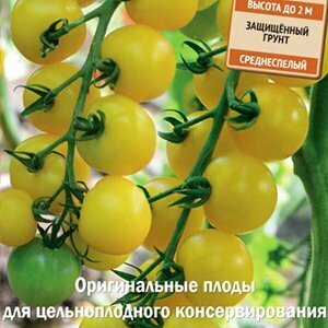 Высокоурожайный, индетерминантный, среднеспелый гибрид для защищенного и открытого грунта. Требует формирования и подвязки. Период от всходов до начала плодоношения 110-115 дней. Плод округлый, массой 40-50 г, ярко-желтый, блестящий, плотный. Мякоть плотная, сочная, кисло-сладкого вкуса. Кисть красивая, простая, плотная, с 9-13 плодами. Пригоден для уборки целыми кистями. Устойчив к ВТМ, фузариозному увяданию, очень пластичен, устойчив к перепаду температуры. Рекомендуется для потребления в свежем виде и цельноплодного консервирования.