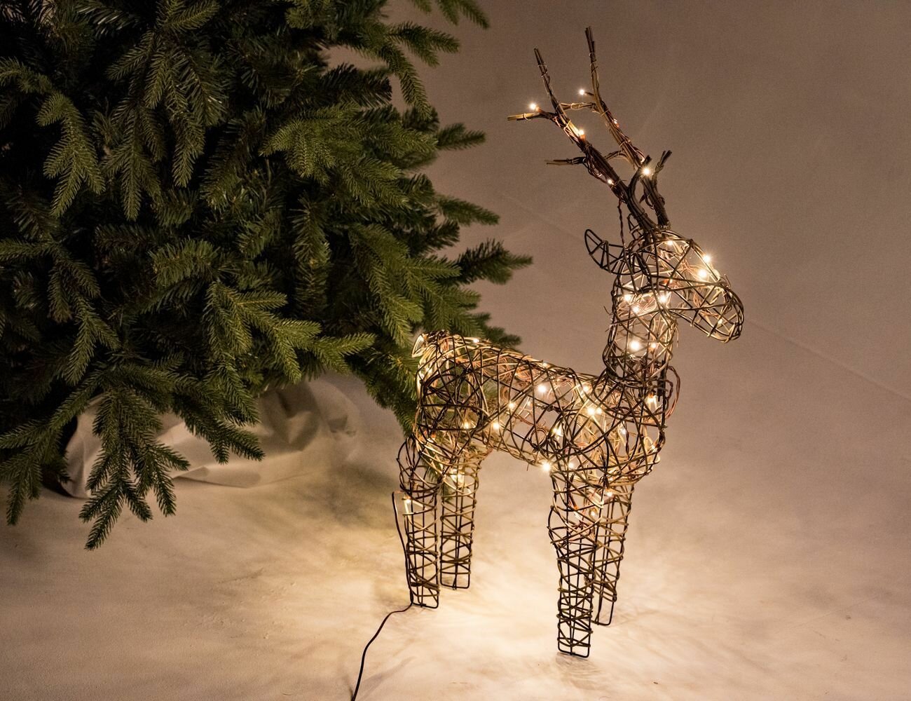 Благородный, грациозный и, при этом, невероятно трогательный коричневый плетёный Олень подарит вам тёмным вечером чарующую красоту и умиротворение, светясь звёздной россыпью из 48-ми крошечных тёплых огоньков, привлекающих доброе волшебство! Характеристики: Размер (ДхВхШ) - 45х69х17 см. Материал - металлический каркас, шнур. Цвет - коричневый. 48 тёплых белых LED-огней. Напряжение - 220/24 V (адаптер в комплекте) Подводящий провод - 5 м. В комплекте штыри для установки в саду. Изделие полностью гидроизолировано IP 44, может быть использовано как внутри, так и вне помещений. Производитель KAEMINGK (серия Lumineo), Голландия. Производство размещено в Китае.