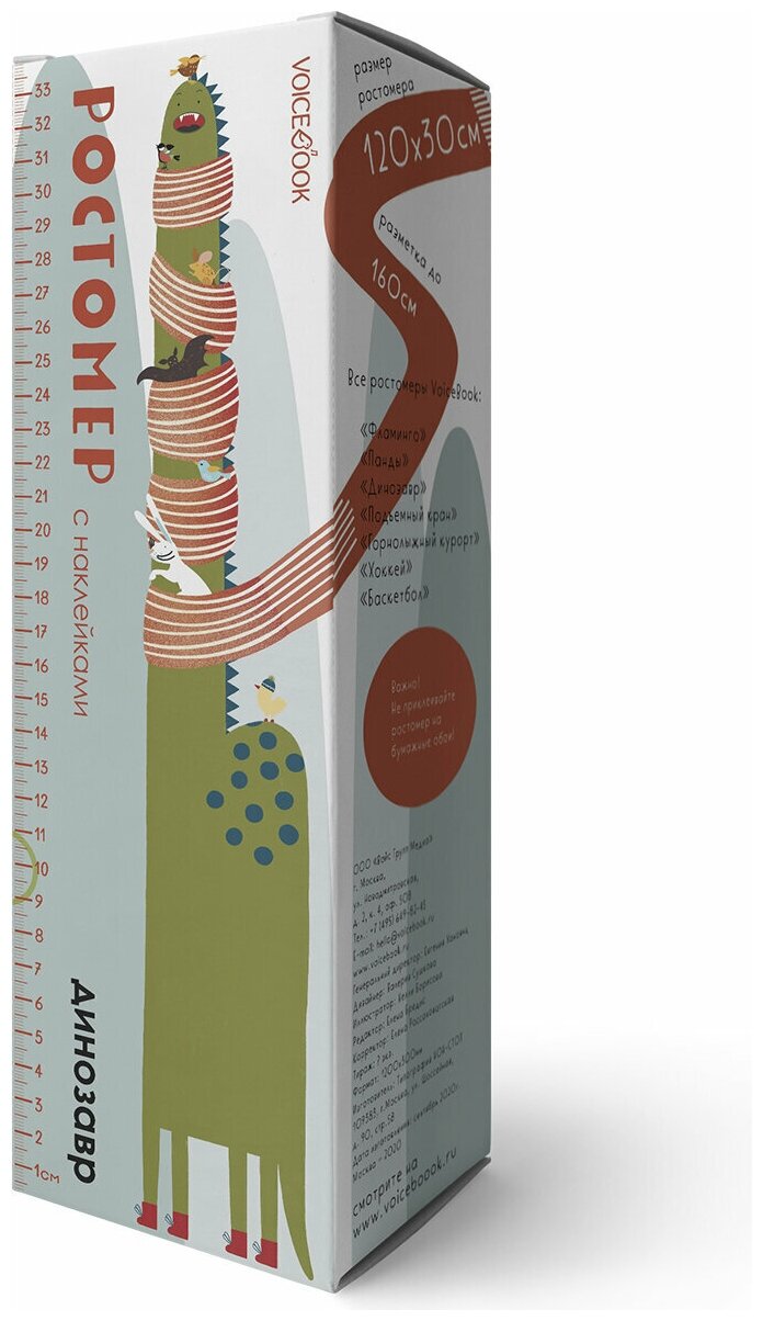 С новым ростомером Динозавр ваш маленький исследователь потягается в росте с самым длинношеим динозавром! Гость из Юрского периода собрался на веселую зимнюю прогулку, прихватив с собой своих маленьких лесных друзей и сноуборд. С этим ростомером в дом придет зимний уют и праздничное настроение, поэтому он может стать отличным подарком для малыша к Новому году.