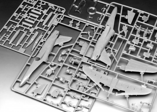 Самолет собирается из 90 пластиковых деталей. Их необходимо склеить между собой, а получившуюся модель покрасить согласно инструкции. Также в набор включены декали, которые помогут сделать внешний вид самолета более аутентичным.