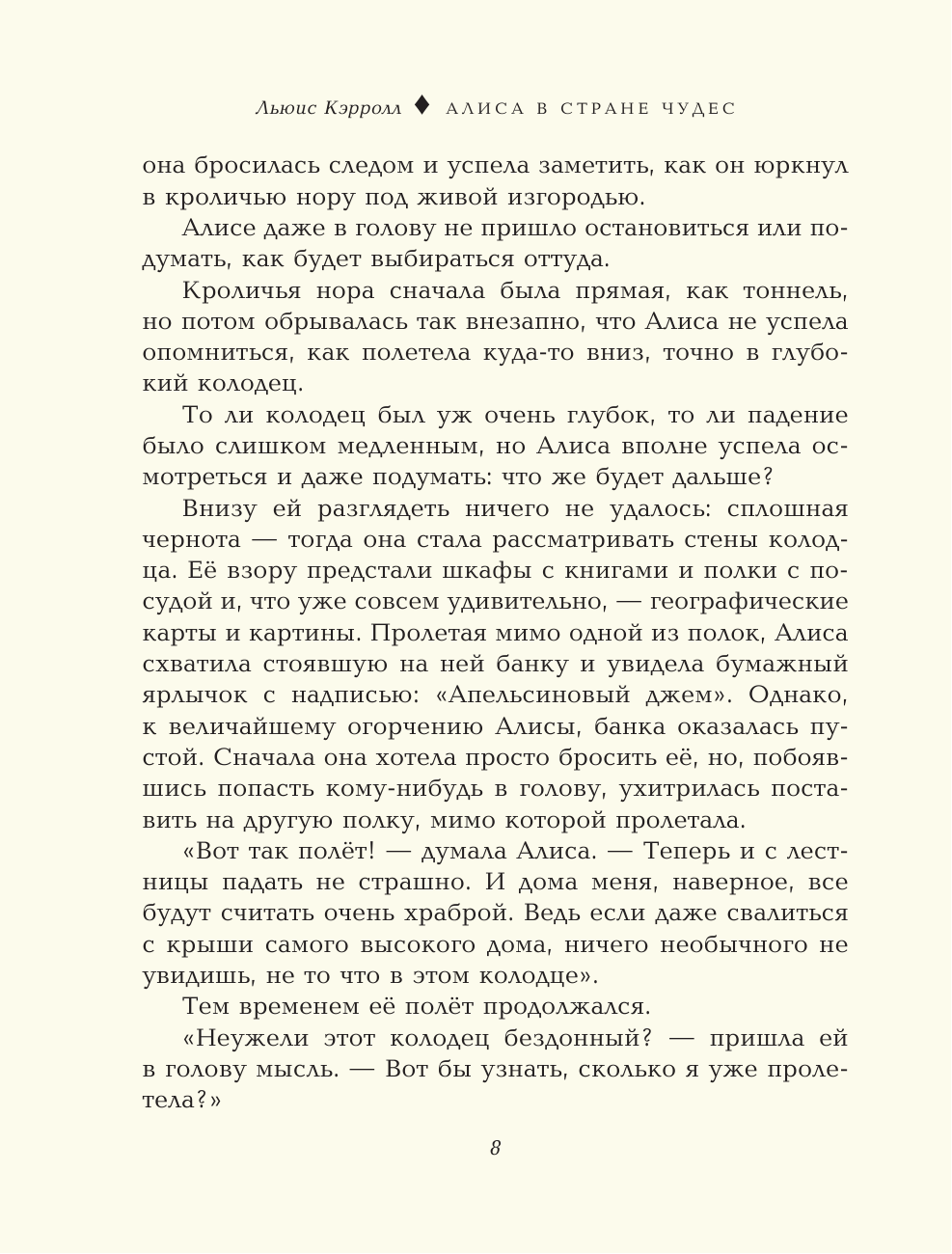 Как легко случайная встреча может изменить жизнь! Увидела Алиса куда-то спешащего Белого Кролика — и жизнь девочки перевернулась… В буквальном смысле несколько раз. Ведь Алиса отважно бросилась навстречу приключениям, нырнув в кроличью нору и перешагнув границу старинного зеркала…