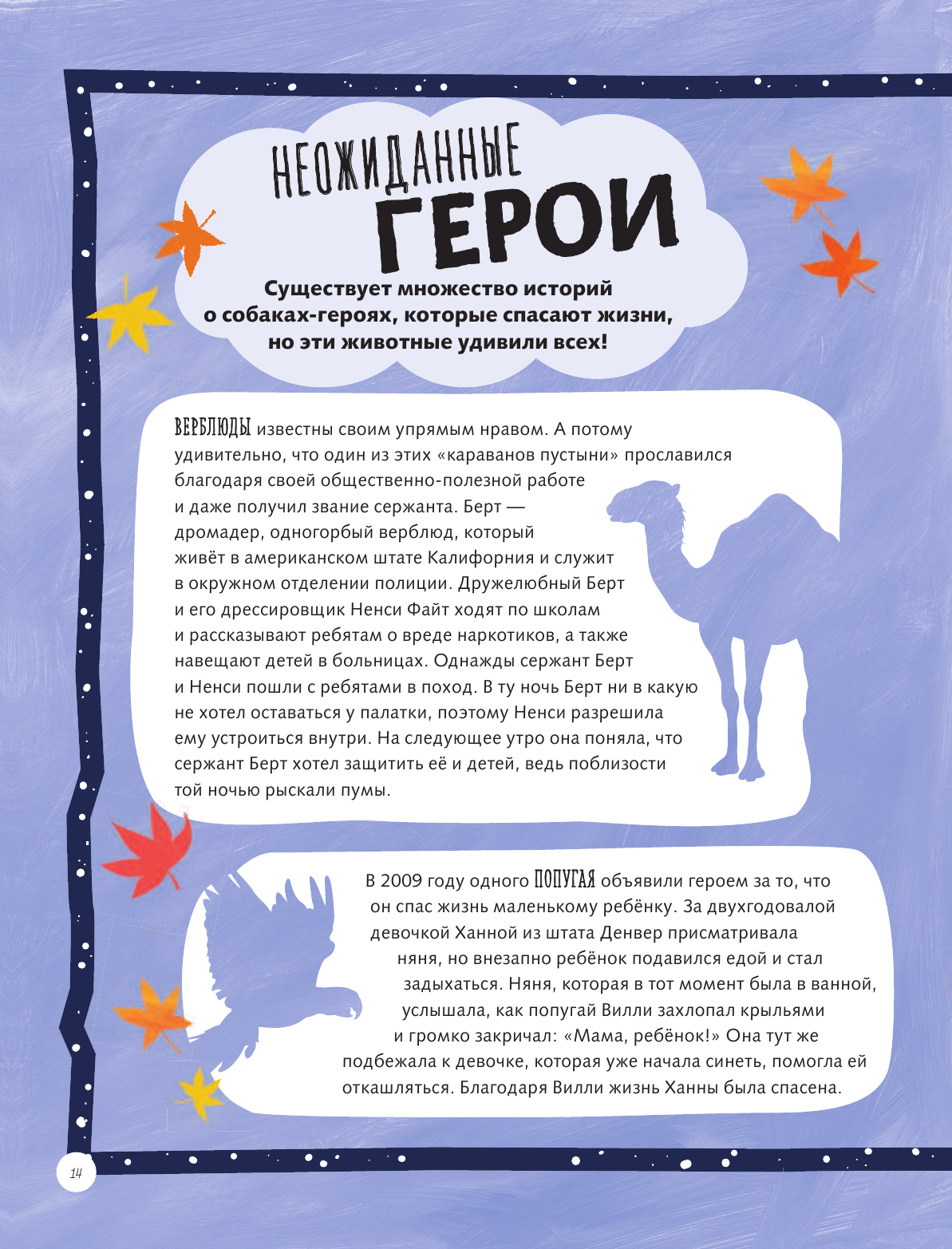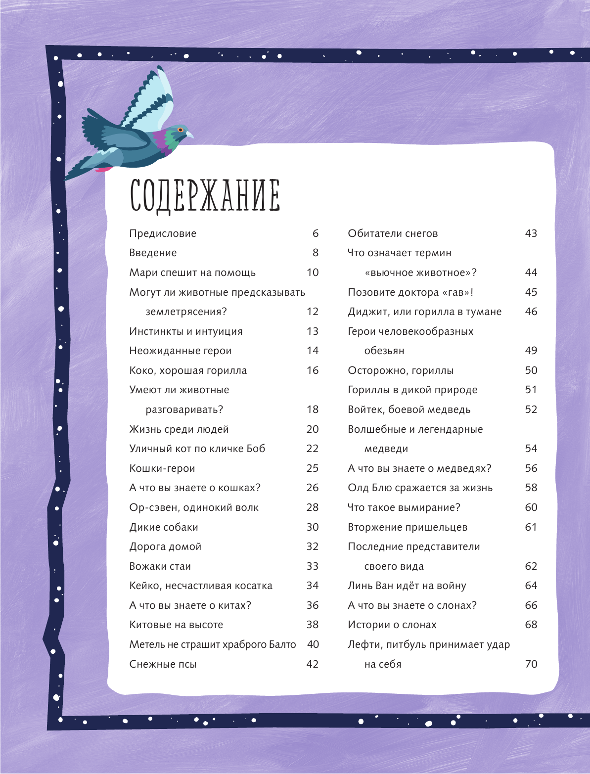 В этой книге собраны истории об удивительной смелости, невероятном интеллекте, преданности и любви животных. Они стали героями не только животного мира, но и нашего, мира людей. Эти отважные, творческие и находчивые существа являются для нас неиссякаемым источником вдохновения и силы — рисуют ли они удивительные картины, учат ли язык жестов или смело встают на защиту хозяина. И пусть эти истории пробудят в вашей душе желание тоже стать героем, но теперь уже для них.