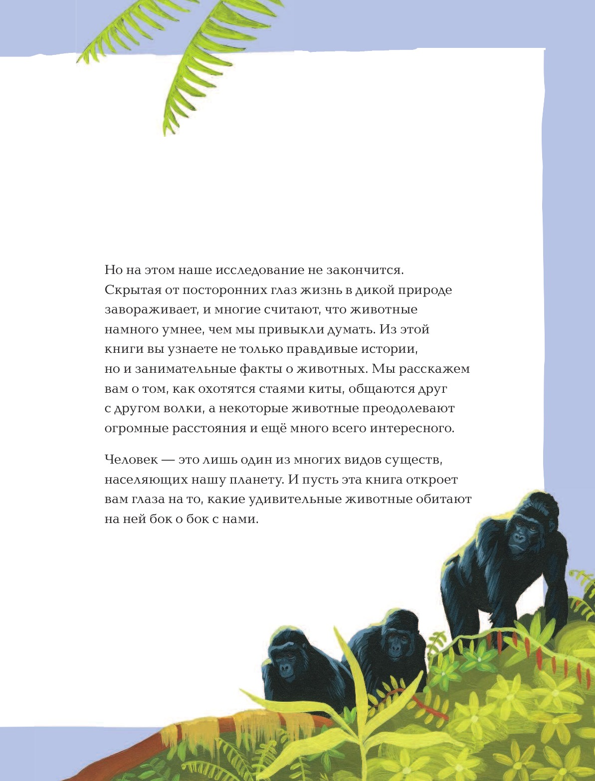 КУпил эту книгу для своего сына третьеклассника, не ожидал, что она ему так понравится. Он читал ее взахлеб, как мы в старые времена, и делился прочитанным. Для него эта книга стала открытием в мир жизни и поведения животных в разных ситуациях. Теперь дома он изменил отношение к своим друзьям - коту, попугаю и черепашкам, стал наблюдательнее и их действия сопоставляет со своими знаниями, которые получил от прочтения этой книги.