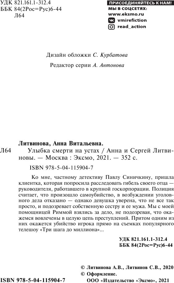 Книга: Улыбка смерти на устах (Анна и Сергей Литвиновы); Эксмо, Редакция 1, 2020