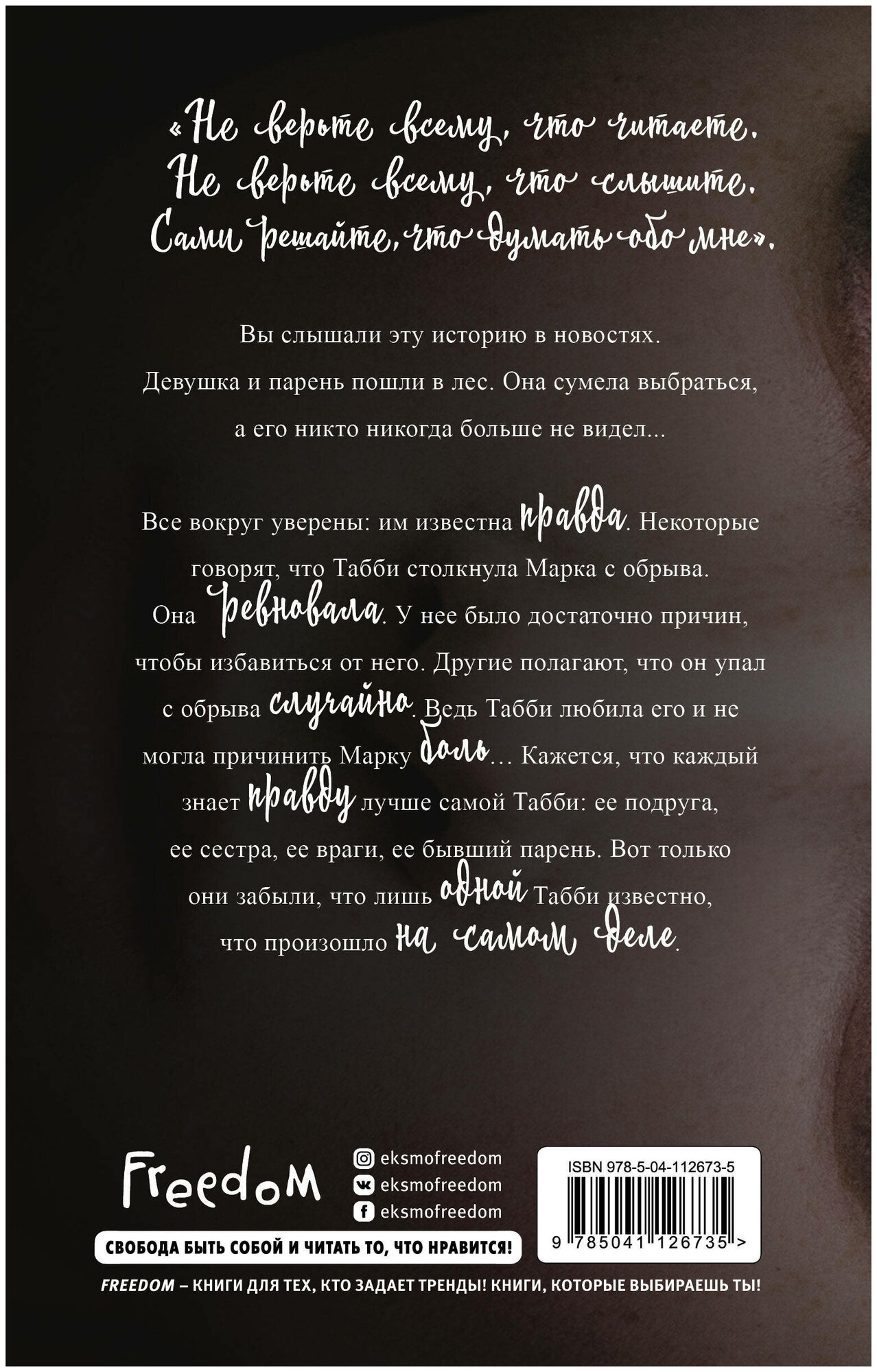 Все вокруг уверены: им известна правда. Некоторые говорят, что Табби столкнула Марка с обрыва. Она ревновала. У нее было достаточно причин, чтобы избавиться от него. Другие полагают, что он упал с обрыва случайно. Ведь Табби любила его и не могла причинить Марку боль…. Кажется, что каждый знает правду лучше самой Табби: ее подруга, ее сестра, ее враги, ее бывший парень. Вот только они забыли, что лишь одной Табби известно, что произошло на самом деле.