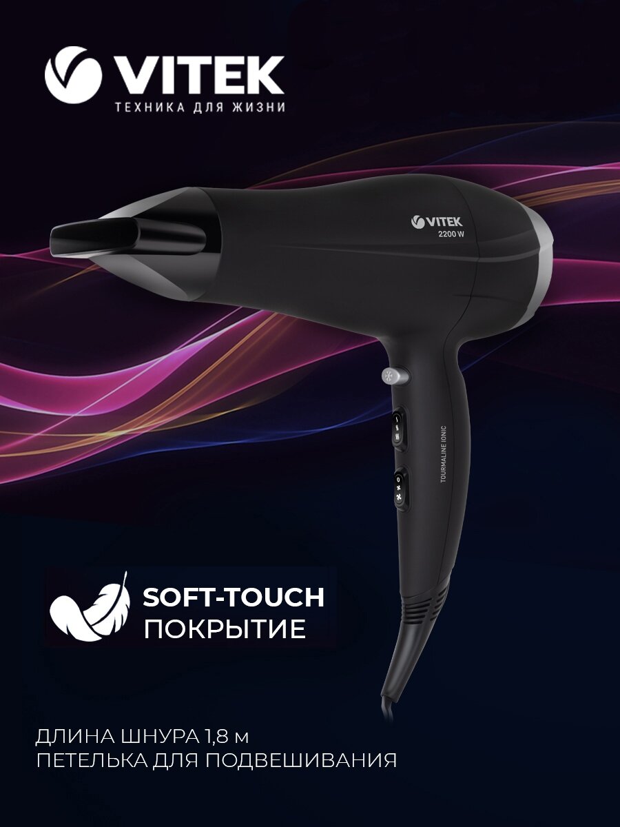 Фен VITEK 1302-VT 2200Вт черный 1302-VT-02