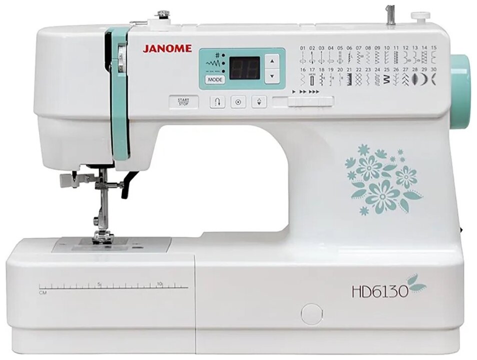 Компьютерная швейная машина — Janome HD6130. Основные преимущества: 30 швейных операций, усиленный прокол иглы, дополнительный подъем лапки, регулировка скорости шитья, встроенный нитевдеватель и светодиодное освещение. Возможность шитья без педали, шитья со свободным рукавом, кнопками обратного хода (реверс), точечной закрепки и позиционированием иглы. Наличие рабочих, оверлочных, трикотажных, декоративных строчек, а также автоматическая петля под размер пуговицы поможет Вам в реализации Ваших творческих идей и задумок. Таким образом — данная модель обладает широким функционалом для выполнения разных задач.