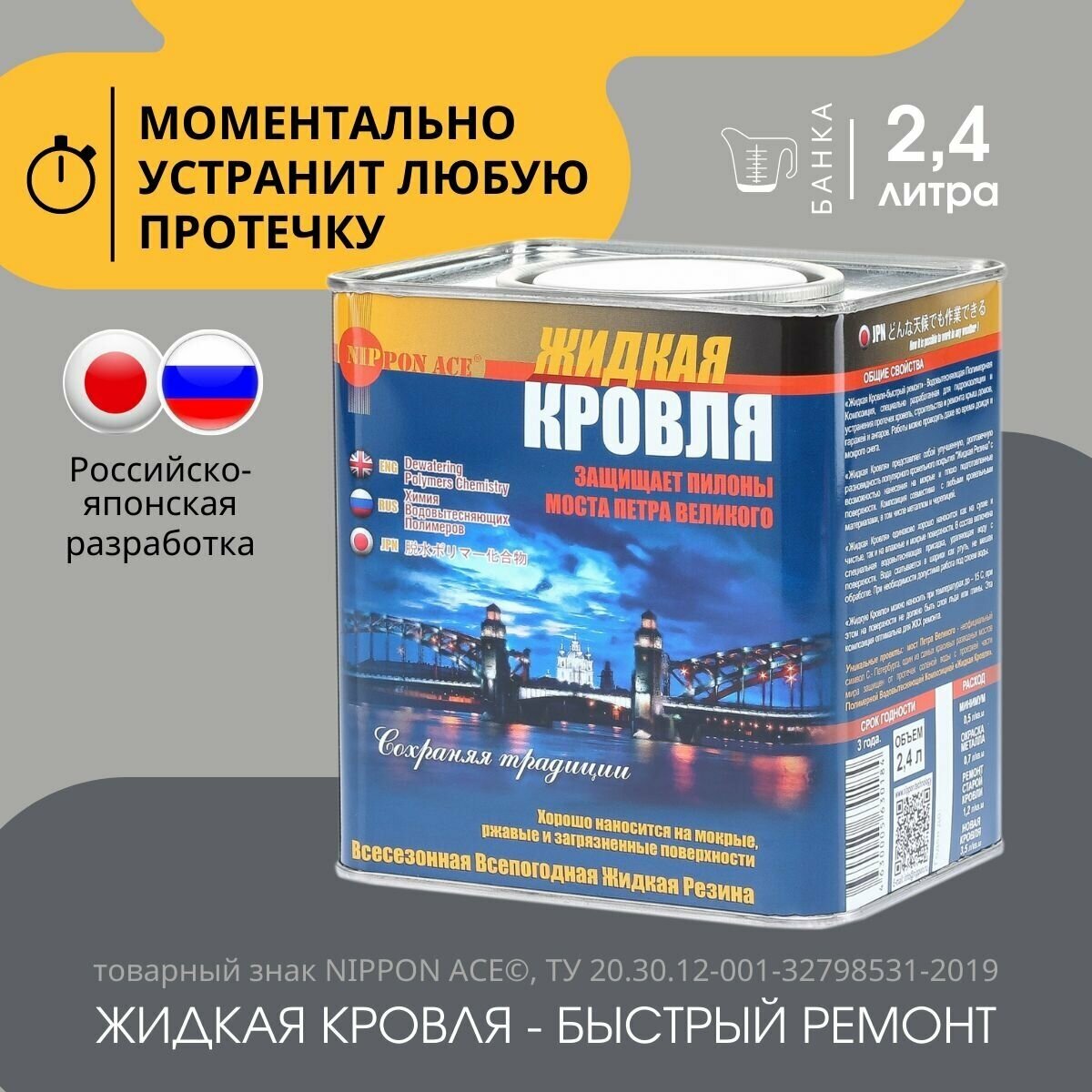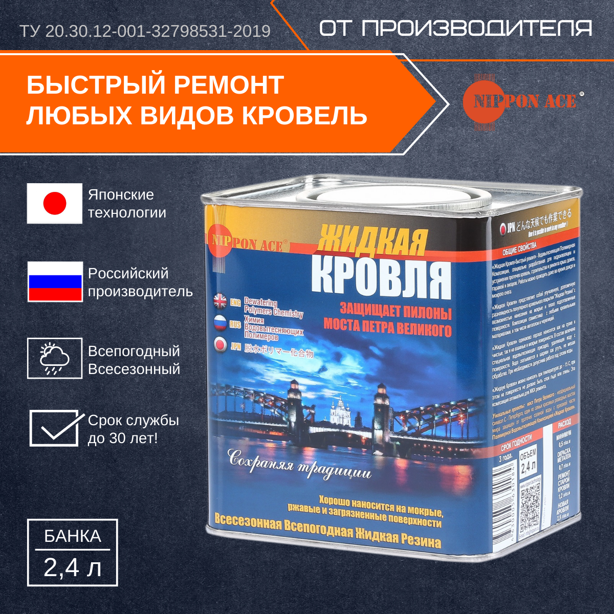 Жидкая кровля NIPPON ACE Быстрый ремонт 2,4 л