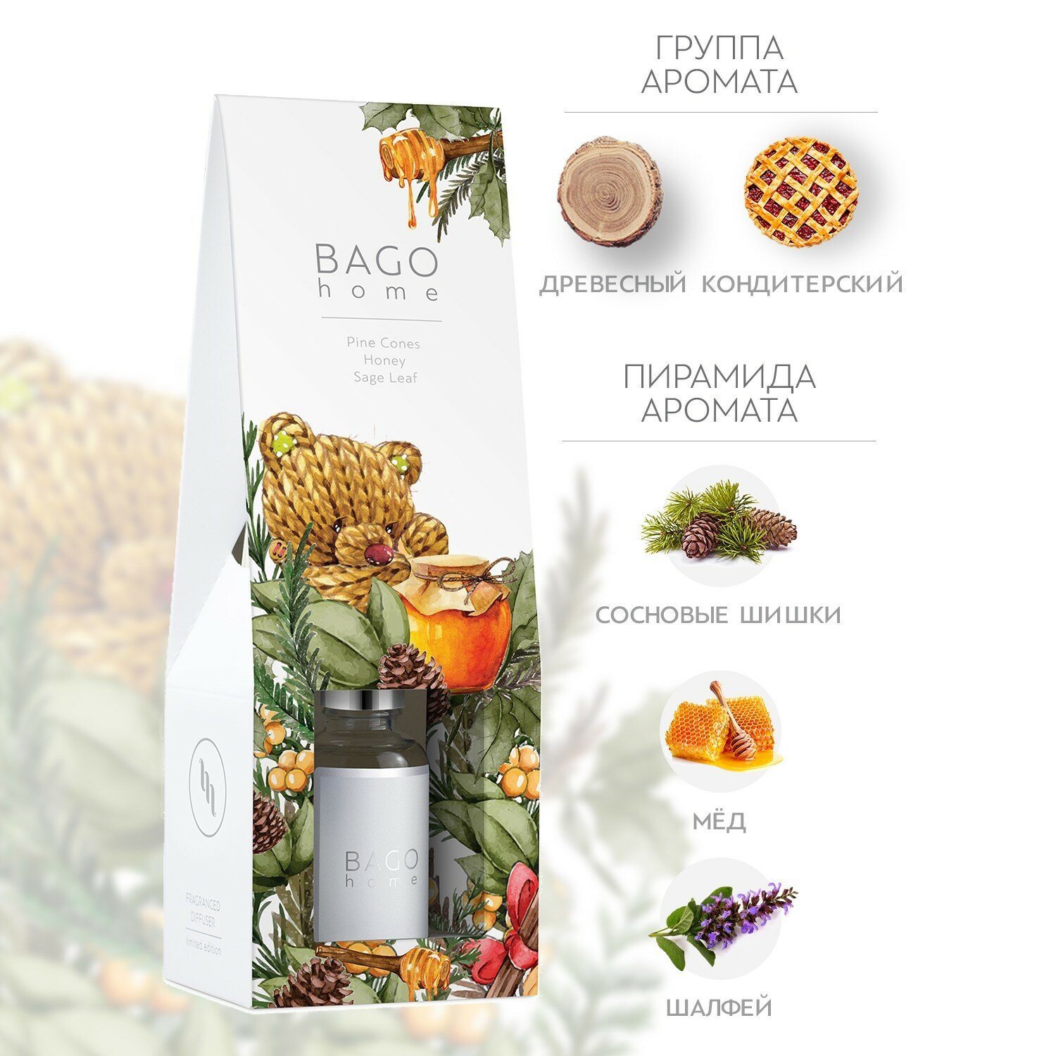 Диффузор ароматический Шишки в меду 30 мл Bago home