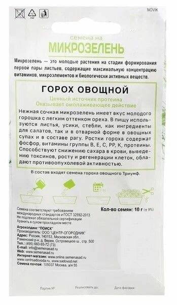 Сервис сравнения цен СкидкаГИД предлагает сравнить цены на товар «Семена на микрозелень Поиск Горох Овощной 10 г»