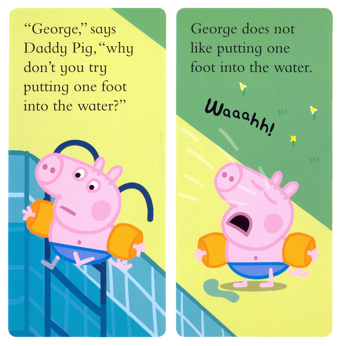 It's George's first time and he feels a little nervous but with some help from Mummy and Daddy Pig, soon George is splashing around in the water!