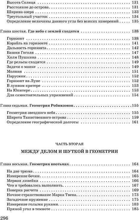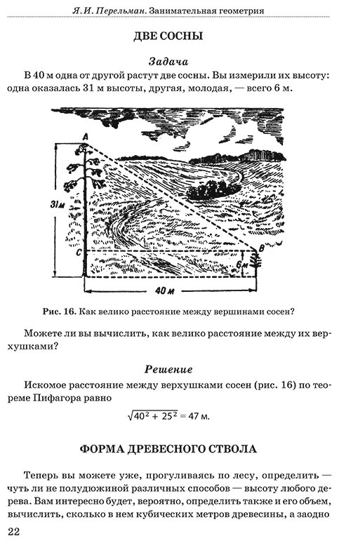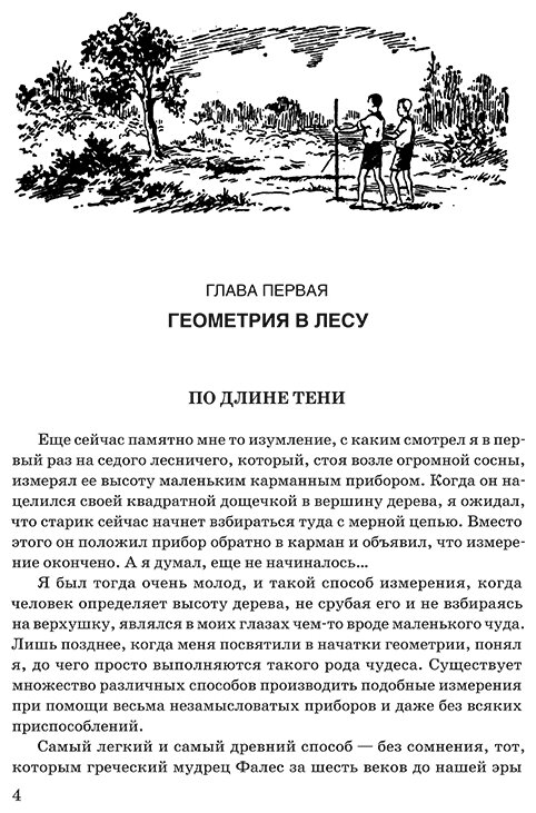 В настоящей книге геометрия предстает перед читателем не просто набором сухих цифр и скучных теорий, а увлекательным путешествием в мир пространства. Как утверждал Галилей, природа всегда говорит с человеком языком математики: буквы этого языка – круги, треугольники и иные математические фигуры. В этой связи Яков Перельман намеренно переместил занятия по геометрии из тесных стен школьной комнаты на вольный воздух, в лес, поле, к реке, на дорогу, чтобы под открытым небом отдаться непринужденным вычислениям без учебника и таблиц. Как и в книге «Занимательная математика» автор приводит набор необычных опытов и нестандартных задач, которые он сумел найти на страницах произведений классической литературы – Л. Н. Толстого, А. П. Чехова, А. С. Пушкина и Н. В. Гоголя. Книга адресована как подросткам, так и взрослым, решившим заинтересовать своих чад точными науками.