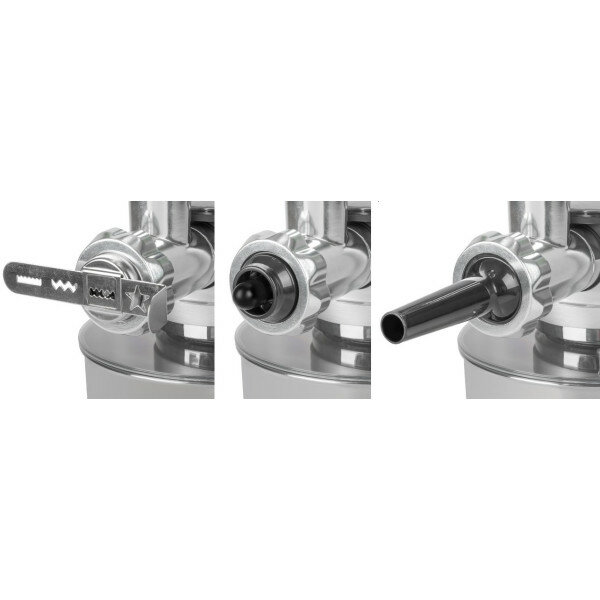Кухонный комбайн (блендер + мясорубка + тестомес) с алюминиевым корпусом и прочным металлическим редуктором. Позволяет облегчить и ускорить выполнение 90% кухонной работы. Может замесить тесто, взбить крем, смешать ингредиенты, перемолоть мясо, приготовить колбаски, печенье, подходит для приготовления фруктовых фитнес-напитков, молочных коктейлей, супов, сальсы и детского питания, а также смузи, овощных пюре, соусов, паст и др.