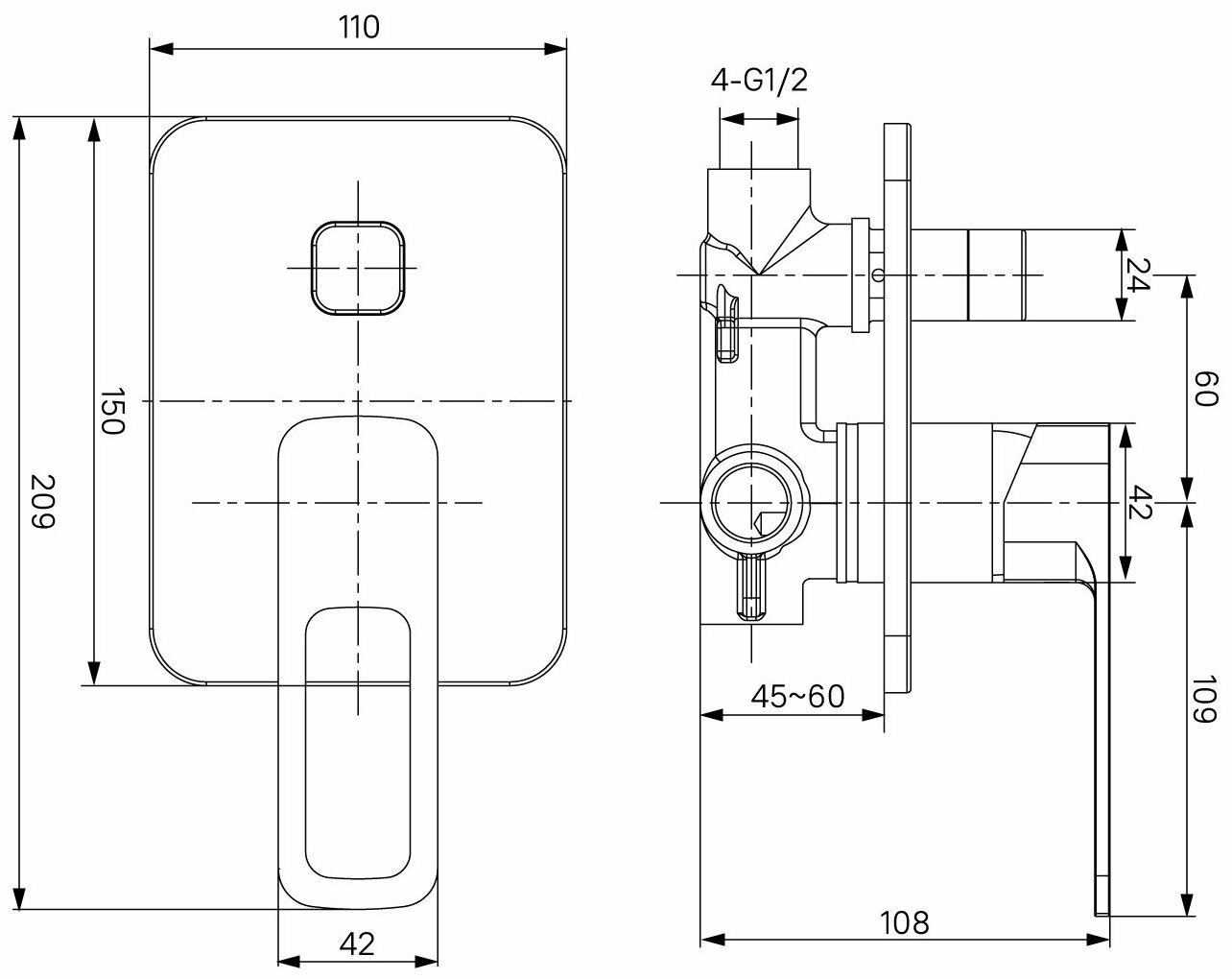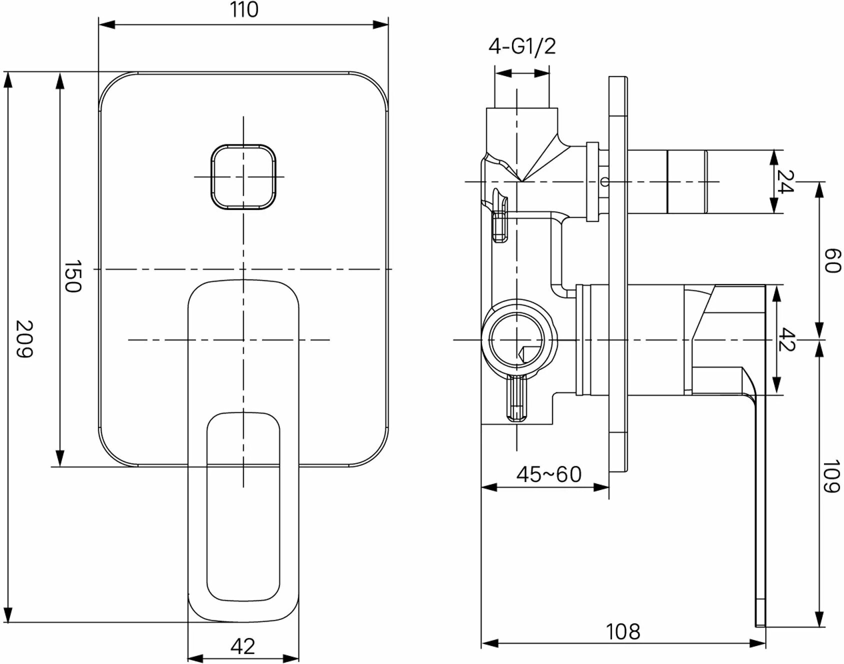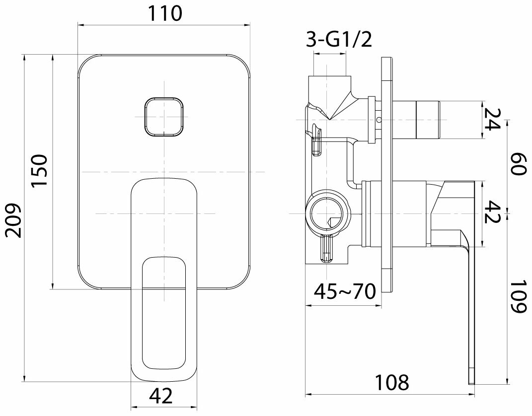 | Тип продукта | Встраиваемый смеситель для душа |