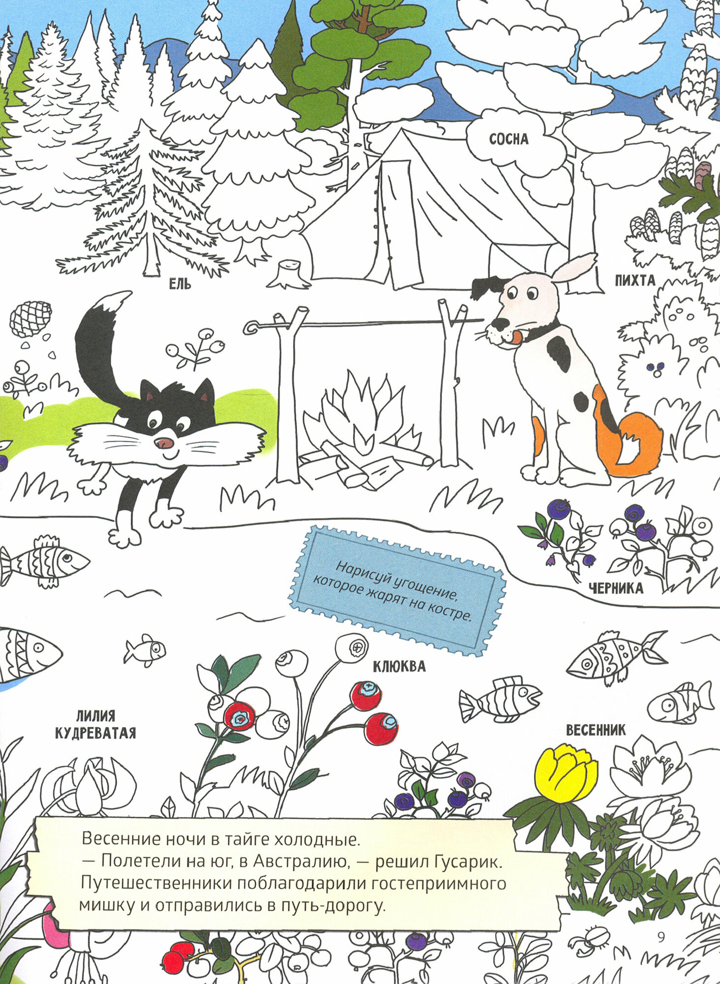Главные герои творческой раскраски Татьяны Дашкевич «Вокруг света вместе с котом Гусариком и собакой Мелли» могут быть знакомы по повести «Приключения семейного кота Гусарика».