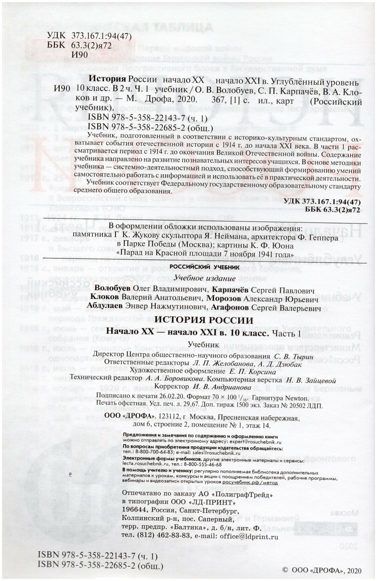 История России. Начало XX - начало XXI в. 10 класс. Учебник. Углубленный уровень. В 2-х ч. Часть 1 (Волобуев Олег Владимирович, Клоков Валерий Анатольевич, Карпачев Сергей Павлович); Дрофа, 2021
