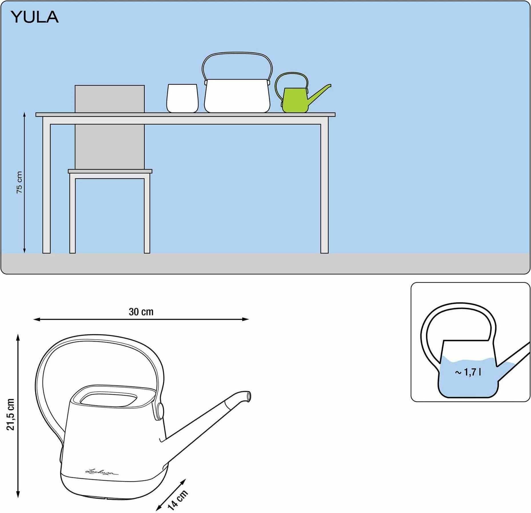 Лейка LECHUZA Yula - это не просто функционально удобный инструмент для полива воды, а стильный предмет интерьера. Поставьте ее рядом с любым растением, и композиция заиграет по-новому.Лейка Лечуза Yula изготовлена из высококачественного пластика. Объем лейки Лечуза Yula - 1,7 литра. Длинный носик позволяет аккуратно дозировать воду при поливе и не намочить стол или подоконник.